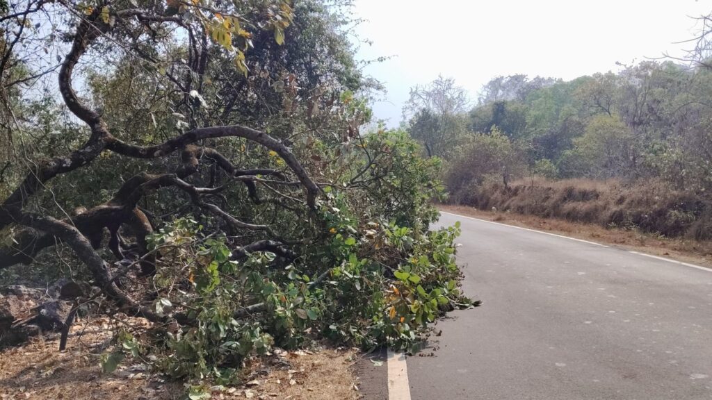 ⚡सावंतवाडी ता.०७-: आरोंदा ते मळेवाडकडे जाणाऱ्या मुख्यरस्त्याच्या बाजूला आरोंदा खरी येथे काजूचे भले मोठे झाड रस्त्यावर पडल्याने वाहनांस अडथळा निर्माण झाला आहे.हे काजूचे पडलेले भले मोठे झाड आणि रस्त्याच्या समोर मोठे वळण असल्याने वाहनचालकांची धांदल उडत आहे.अचानक समोरून वाहन आल्यास ते दिसत नसल्यामुळे अपघाताची शक्यता निर्माण झाली आहे.त्यामुळे लवकरात लवकर हे झाड बाजूला करण्याची मागणी…