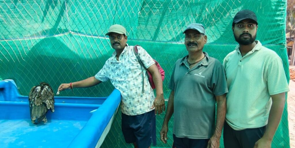 दांडी येथे जाळ्यात अडकलेल्या घारीला जीवदान…