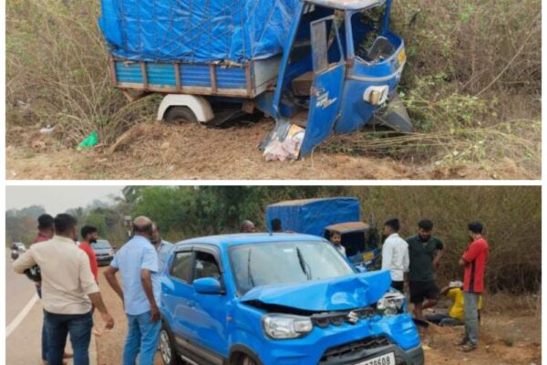 ⚡कणकवली ता.१५-: मुंबईहून गोव्याच्या दिशेने जाणाऱ्या प्रेसो कारने रिक्षा टेम्पोला मागून जोरदार धडक दिल्याने वागदे टेंबवाडी येथे अपघात घडला. हा अपघात रविवारी (१५ मार्च) सकाळी सुमारे ९ वाजण्याच्या सुमारास झाला. भंगार व्यावसायिक कुमार सूर्यवंशी हे आपल्या ताब्यातील रिक्षा टेम्पो घेऊन कणकवलीहून कसालच्या दिशेने जात होते. त्यावेळी मुंबईहून गोव्याच्या दिशेने भरधाव वेगात येणाऱ्या GA-03 Z-9608 क्रमांकाच्या…