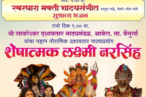 ⚡सावंतवाडी ता.२३-: तिरोडा (बामणवाडी) श्री देवी खाजणादेवी देवस्थान येथेशुक्रवार दिनांक १ मे रोजी विविध कार्यक्रम आयोजित करण्यात आले आहे.सकाळी ९ वाजता”श्रीं “वर महाअभिषेक व शाश्वत पूजादुपारी १:३०वाजता महाआरती व महागाऱ्हाणे,दुपारी २ वाजता महाप्रसाद तसेच रात्रौ ७ वाजताआरोलकर दशावतार नाट्यमंडळ आरवली (वेंगुर्ला – सिंधुदुर्ग) यांचा दशावतारी नाट्यप्रयोग होणार आहे.तरी सर्व भाविकांनी व भक्तगणांनी या कार्यक्रमाचा अवश्य…