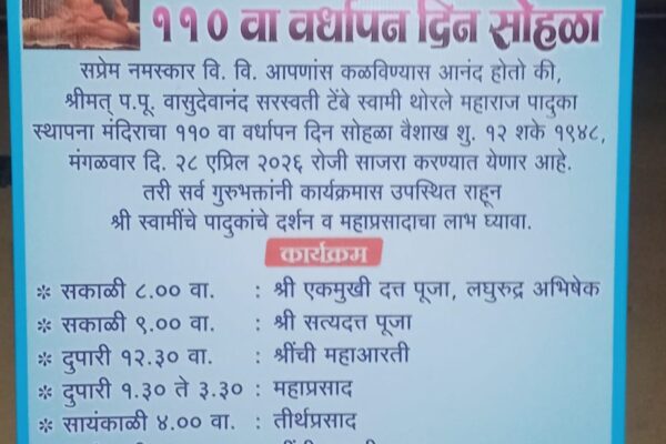 ⚡सावंतवाडी ता.२७-: श्री देव काळोबा मित्रमंडळ वसवाचे- तळे यांच्या वतीने आज सोमवार दि.२७ एप्रिल रोजी रात्रौ ठिक ७.०० वाजता ,धाकोरे वसवाचे तळे शाळेसमोरील मैदानावर ,पार्सेकर पारंपारिक दशावतार नाट्यमंडळ,उभादांडा, वेंगुर्ला यांचा “युगे युगे कलियुगे” हा दशावतार नाट्य प्रयोग होणार आहे .तरी सर्व नाट्य रसिकांनी याचा लाभ घेण्याचे आवाहन श्री देव काळोबा मित्रमंडळ धाकोरे वसवाचे- तळे व…
