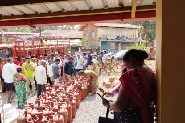 आरोंद्यात गॅस सिलेंडर साठी ग्राहकांच्या लांबच लांब रांगा…
