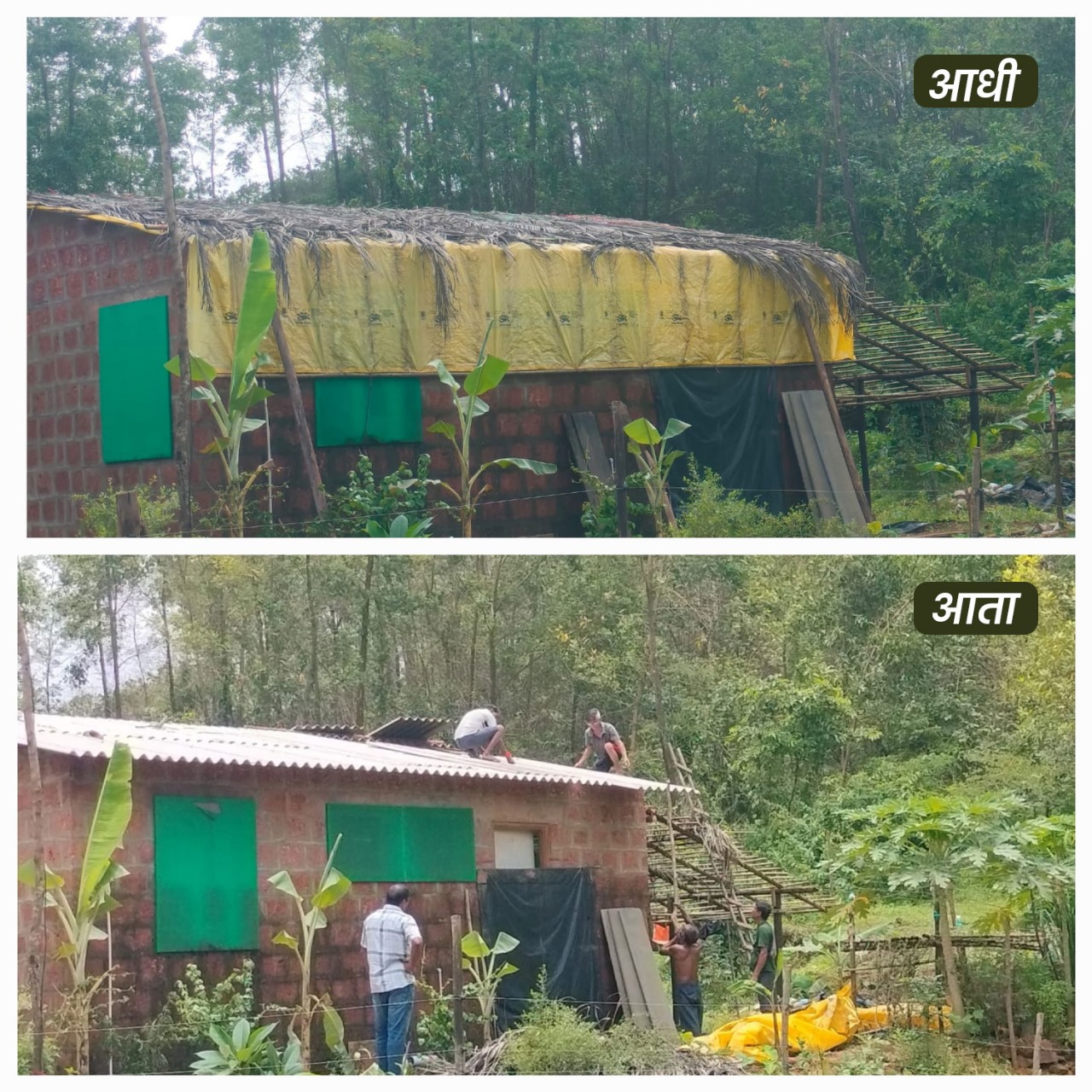 ⚡बांदा ता.१७-: वाफोलीमधील रमेश मेस्त्री या शेतकऱ्याचे छप्पर वादळी वाऱ्यासह कोसळत असलेल्या मुसळधार पावसाने उडून गेले. वाफोली सरपंच श्री उमेश शिरोडकर, उपसरपंच श्री विनेश गवस यांच्या माध्यमातून ही कैफियत भाजपा युवा मोर्चा प्रदेश उपाध्यक्ष श्री विशाल परब यांच्या कानावर पोहोचली. तातडीने या अडचणीची दखल घेत सरपंच श्री उमेश शिरोडकर, उपसरपंच श्री विनेश गवस व भाजपा पदाधिकाऱ्यांच्या माध्यमातून विशाल परब यांनी रमेश मेस्त्री यांच्या घराचे छप्पर पूर्ण करून दिले. भाजपा कार्यकर्त्यांना आपला परिवार मानत त्यांच्या पाठीशी उभे राहण्याचा लौकिक आजवर ऐकत आलो होतो, आज त्याचा अनुभव घेतला, असे भावनोत्कट उद्गार मेस्त्री कुटुंबियांनी काढले.