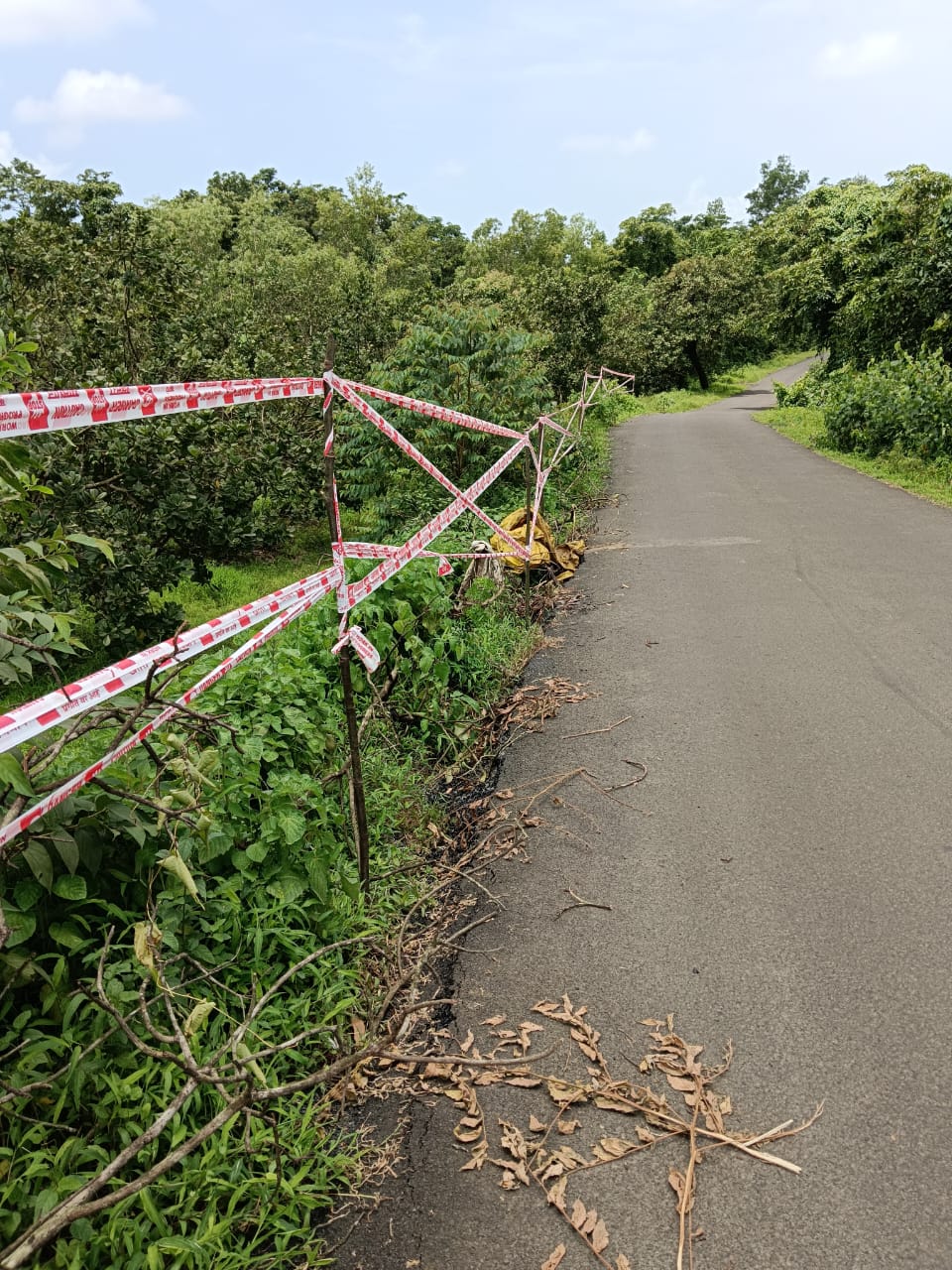 पाडलोस केणीवाडा डोंगराचीकोंड येथे रस्ता उजव्या बाजूने खचत चालला आहे. ग्रामस्थांनी बांधकाम विभागाचे लक्ष वेधल्यानंतर सुरक्षिततेच्या दृष्टीने केवळ लाकडी काठीच्या साहाय्याने पट्टी बांधण्यात आली आहे. यामुळे अपघात टळणार नसून यासाठी ठोस उपाययोजनाची आवश्यकता आहे.