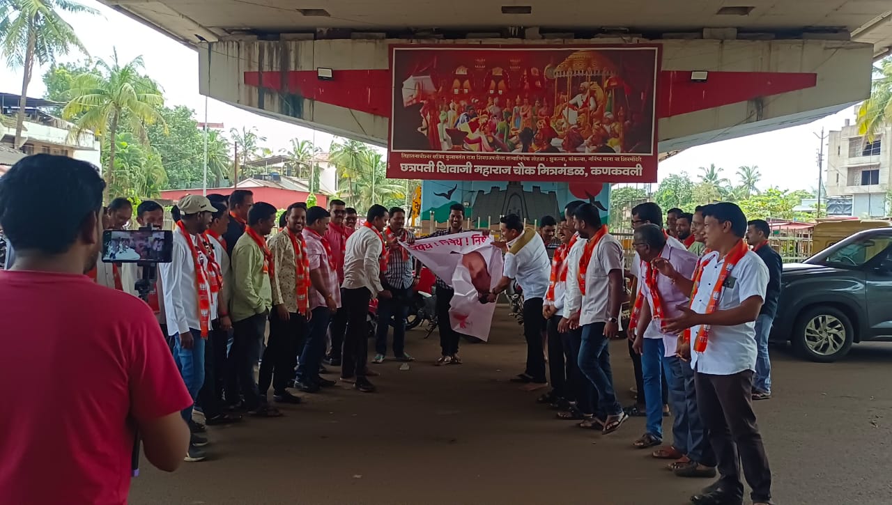यावेळी गली गली मे शोर हाई … रामदास कदम चोर है, नीम का पत्ता कडवा है …. रामदास कदम भडवा है, रवींद्र चव्हाण तुम आगे बढो … हम तुम्हारे साथ है, नितेश राणे तुम आगे बढो … हम तुम्हारे साथ है अशा घोषणा दिल्या. यावेळी माजी सभापती दिलीप तळेकर यांनी यांनी तीव्र स्वरूपात आपल्या भावना व्यक्त करताना यापुढे जशास तसे उत्तर देण्यात येईल असे स्पष्ट केले.