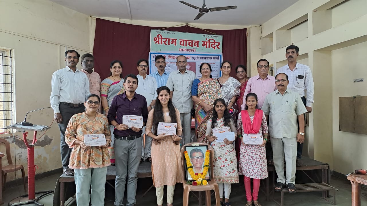 सावंतवाडी : रविवारी सकाळपासूनच सावंतवाडीत पाऊस धो धो कोसळत होता. मात्र या कोसळणाऱ्या पावसासोबतच सावंतवाडीच्या श्रीराम वाचन मंदिर मध्ये कवी व कवयित्रींच्या प्रतिभा शक्तीने काव्यधारा देखील बरसल्या. कोकणचे साहित्यरत्न व ज्येष्ठ साहित्यिक कै. विद्याधर भागवत स्मृती काव्यवाचन स्पर्धेचे यंदाचे 14 वे वर्ष होते. सलग चौदाव्या वर्षी स्वरचित काव्यवाचन स्पर्धा घेण्यात आल्या. यात तब्बल 25 कवी – कवयित्रींनी सहभाग नोंदविला. या स्पर्धेत प्रथम क्रमांक बांदा येथील मीनाक्षी अडवणी यांनी पटकावला तर द्वितीय सावंतवाडीचे अक्षय कानविंदे व तृतीय क्रमांक वेंगुर्ला येथील प्राजक्ता संकेत करंगुटकर तर उत्तेजनार्थ सावंतवाडीच्या योगिता शेटकर व द्वितीय उत्तेजनार्थ माया गवस यांनी पटकावला.