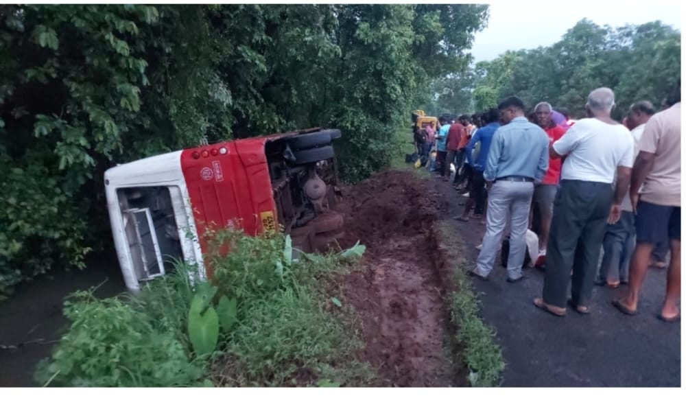 रविवारी सायंकाळी सहाच्या सुमारास विजापूर कुडाळ बस कोल्हापूर गगनबावडा भुईबावडा घाटमार्ग वैभववाडी वरुन कुडाळ कडे जाणारी एसटी बस कुसुर पिंपळवाडी दरम्यान आली असता समोरून येणाऱ्या गाडीला बाजू देताना गाडी साईट पट्टी उतरून साईट पट्टी खचल्याने गाडी ओहळात पलटी होऊन अपघात झाला यामधून 32 प्रवासी प्रवास करत होते गाडीची मागील काच फोडून प्रवाशांना सुखरूप बाहेर काढण्यात आले. त्यापैकी 9 प्रवासी किरकोळ जखमी झाले जखमींमध्ये रेणुका परशुराम मिलिंदमणे 50 राहणार कणकवली सुनीता विजय शिंदनिगर 42 सुरेश नारायण गंगावणे वय 72 दिव्या रोहिदास मिस्त्री वय वर्ष 25 राहणार कुडाळ बंडू रेडू राठोड वय वर्ष 41 रेणुका बंडू राठोड वय वर्ष 37 चिंचू बंडू राठोड वय वर्षे 17 सर्व राहणार विजापूर सिद्धेश सुरेश करगोटे वय वर्ष २४ राहणार वैभववाडी समृद्धी सुनील रावराणे वय वर्षी 21 राहणारी एडगाव वैभववाडी असे नऊ जण किरकोळ जखमी होऊन त्यांच्यावर ग्रामीण रुग्णालय वैभववाडी येथे उपचार करून घरी सोडण्यात आले.
