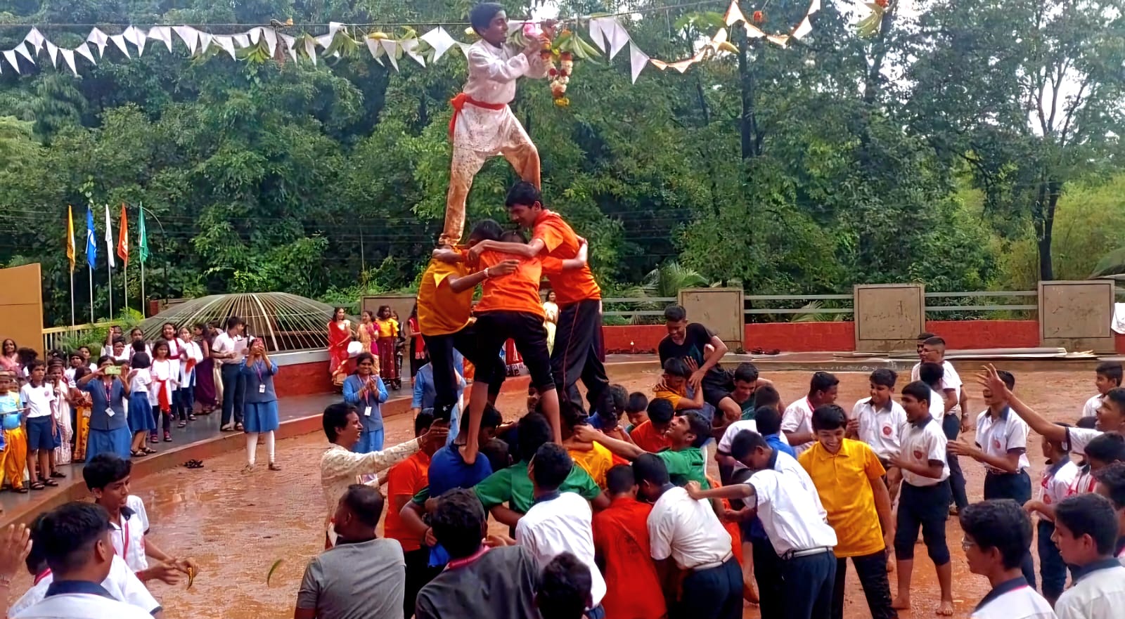 या कार्यक्रमात मुलांनी मनमुराद आनंद लुटला. ‘गोविंदा आला रे आला……’ या गाण्यावर विद्यार्थ्यांनी नृत्याचा आनंद घेतला. शाळेच्या विद्यार्थ्यांच्या पथकाने तीन थर लावत दहीहंडी फोडताच विद्यार्थ्यांनी एकच जल्लोष केला. श्रीकृष्ण जन्मोत्सवानिमित्त राधा कृष्णाची वेशभूषा करून विद्यार्थी या उत्सवात सहभागी झाले होते. कार्यक्रमात नर्सरी ते दहावी पर्यंतचे सर्व विद्यार्थी सहभागी झाले होते. यावेळी आकर्षक वेशभूषा करत शाळेच्या विद्यार्थिनींनी नृत्ये सादर केली. त्याला सर्व विद्यार्थ्यांचा चांगला प्रतिसाद मिळाला. दहीहंडीचे आयोजन क्रीडा शिक्षक सचिन हरमलकर, संदीप पेडणेकर व मुख्याध्यापिका प्रियांका देसाई यांच्या मार्गदर्शनाखाली करण्यात आले.