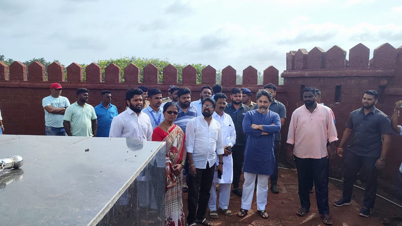 मालवण मधील राजकोट किल्ल्यातील नौदलाने उभारलेला छत्रपती शिवाजी महाराज यांचा पुतळा काल दुपारी कोसळल्याच्या पार्श्वभूमीवर आज सकाळी भाजप नेते निलेश राणे यांनी राजकोट किल्ल्याला भेट देऊन पाहणी केली. यावेळी भाजपा जिल्हा उपाध्यक्ष अशोक सावंत, तालुकाध्यक्ष धोंडी चिंदरकर, शहर अध्यक्ष बाबा मोंडकर, ओबीसी महिला तालुकाध्यक्ष पुजा वेरलकर, पंकज सादये, राकेश सावंत, ललित चव्हाण, आशिष हडकर, निषय पालेकर, अखिलेश शिंदे यांसह अन्य उपस्थित होते.