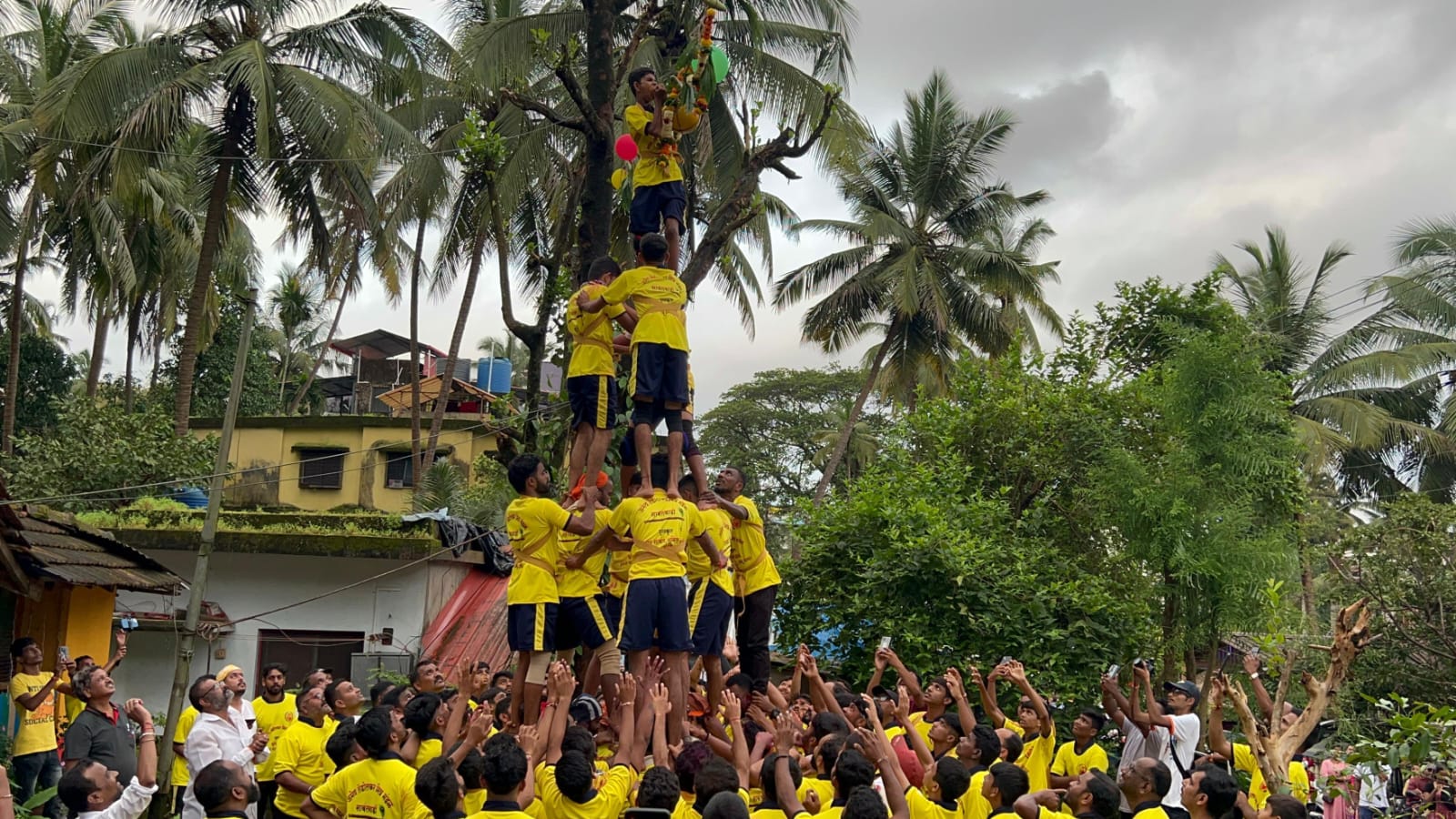 जाम होऊ नये यासाठी वाहतूक पोलीसही जागोजागी तैनात करण्यात आले होते. दहीहंडीचे हे थरार अनुभवण्यासा नागरिकांनी मोठी गर्दी केली होती. यावेळी बदलापूर कोलकता व कोल्हापूर येथील निरागस भगिनींवर अत्याचार करणाऱ्या राक्षहां फाशी द्या अशी मागणी गोविंदांनी केली.