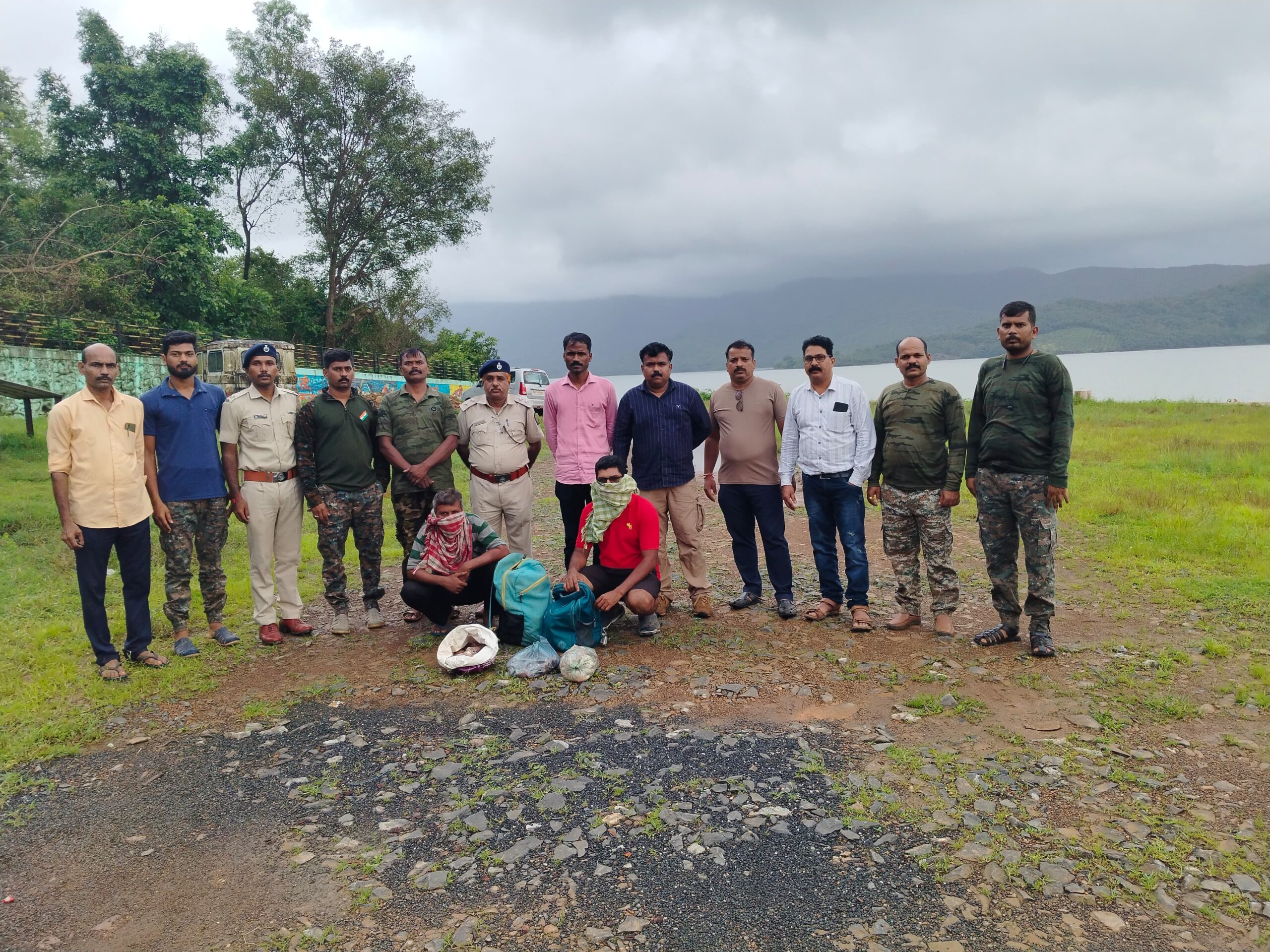दोडामार्ग वनपरिक्षेत्रातील तिलारी धरण क्षेत्रातून आत असलेल्या पाटये गावच्या हददीत १४ जण गेल्याची गोपनीय माहिती वनरक्षक सूर्यभान गिते यांना मिळाली होती. त्या माहितीच्या अनुषंगाने श्री गीते व कोनाळ तपासणी नाका वनरक्षक तत्काळ घटनास्थळी गेले असता सकाळी साडेदहाच्या दरम्यान तिलारी धरणातून एका बोटीमधून प्रवास करून चौघेजण धरणालगत बोटीच्या थांब्याच्या ठिकाणी आले. यावेळी दोघे वनरक्षक या बोटीची व त्यातील व्यक्तीची तपासणी करण्याकरीता गेले असता त्यातील दोघेजण अपु-या मनुष्यबळाचा गैरफायदा घेऊन दुचाकीने फरार झाले व तर दोघा संशयितांना ताब्यात घेऊन चौकशी केली असता त्यांच्याकडे वन्यप्राणी सांबराचे मांस आढळले. वनविभागाने पकडलेल्या दोघांची नावे साईनाथ प्रभाकर नाईक व अनिल गोविंद नाईक ( दोघेही रा. पाटये पुनर्वसन वसाहत , सासोली ता. दोडामार्ग) अशी आहेत तर फरार संशयिताचे नाव समीर पांडुरंग गवस असल्याचे कळले.त्याच्यासोबत त्याचे कामगार असल्याचे वन विभागाकडून सांगण्यात आले.