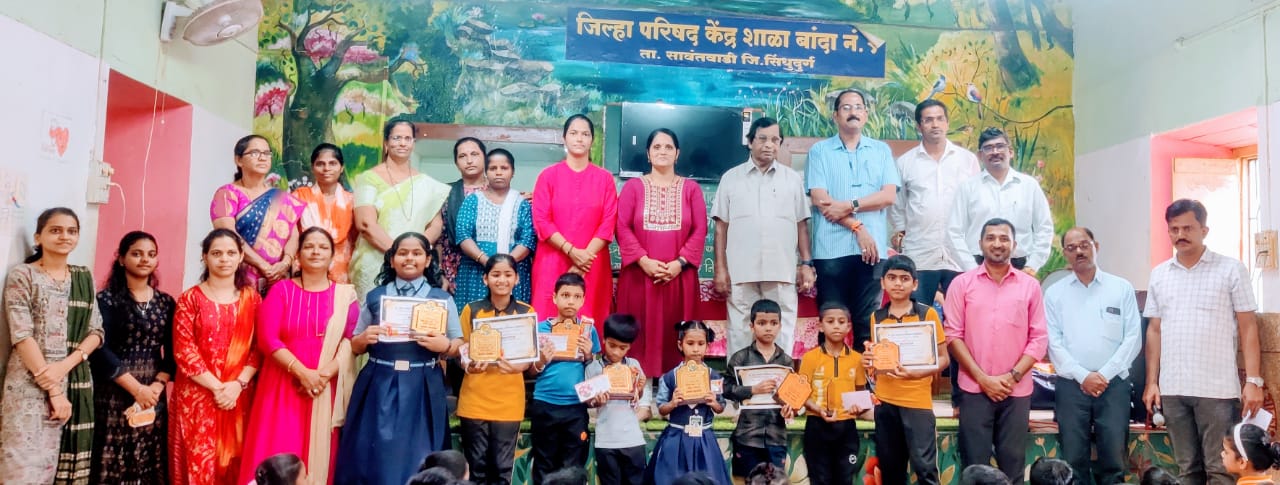 बांदा:- बांदा पंचक्रोशीतील शाळांमध्ये एकाच दिवशी पार पडलेल्या भव्य अशा रंगभरण व निबंध लेखन स्पर्धेचे बक्षीस वितरण आज “आनंददायी शनिवार” या उपक्रमांतर्गत एकाच दिवशी सर्व शाळांमध्ये दिमाखात संपन्न झाले. कै.सुरेश महादेव कल्याणकर यांच्या स्मरणार्थ श्री गुरुदत्त सुरेश कल्याणकर,बांदा यांनी आयोजित केलेल्या या स्पर्धेत पंचक्रोशीतील पंधरा शाळांनी उत्स्फूर्तपणे सहभाग घेतला होता.ग्रामीण भागांमध्ये प्रथमच एवढी मोठी स्पर्धा होत असल्याने विद्यार्थ्यांमध्ये आनंदाचे वातावरण होते.एकूण ५९४ विद्यार्थ्यांनी स्पर्धेत भाग घेतला होता.आज या भव्य अशा स्पर्धेचे बक्षीस वितरण पार पडले.