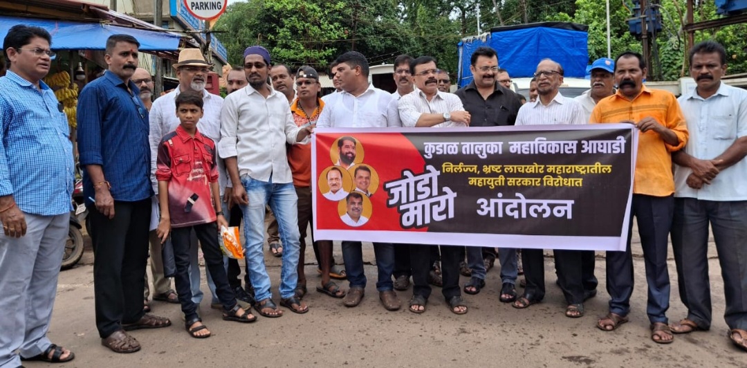२६ ऑगस्ट रोजी राजकोटमध्ये उभारण्यात आलेला छत्रपती शिवाजी महाराजांचा पुतळा कोसळला. त्याला राज्य सरकार जबाबदार असल्याचा आरोप महाविकास आघाडीच्या वतीने केला जात आहे. त्यामुळे या सरकारच्या विरोधात संपूर्ण राज्याभर सरकारला जोडेमारो आंदोलन केले जात आहे. कुडाळ गांधी चौक येथे सुद्धा महाविकास आघाडीच्या वतीने हे आंदोलन करण्यात आले. यावेळी राज्य शासनाविरोधात घोषणा देण्यात आल्या आणि छत्रपती शिवाजी महाराजांचा जयजयकार देखील करण्यात आला. प्रत्यक्ष जोडे मारो आंदोलनाच्या वेळी मात्र पोलिसांनी त्वरित हस्तक्षेप करत मुख्यमंत्री, उपमुख्यामंत्री, पालकमंत्री या नेत्यांचे फोटो असलेला बॅनर हिसकावून घेतला. यावेळी महाविकास आघाडीच्या नेत्यांनी राज्यसरकारवर जोरदार टीका केली.