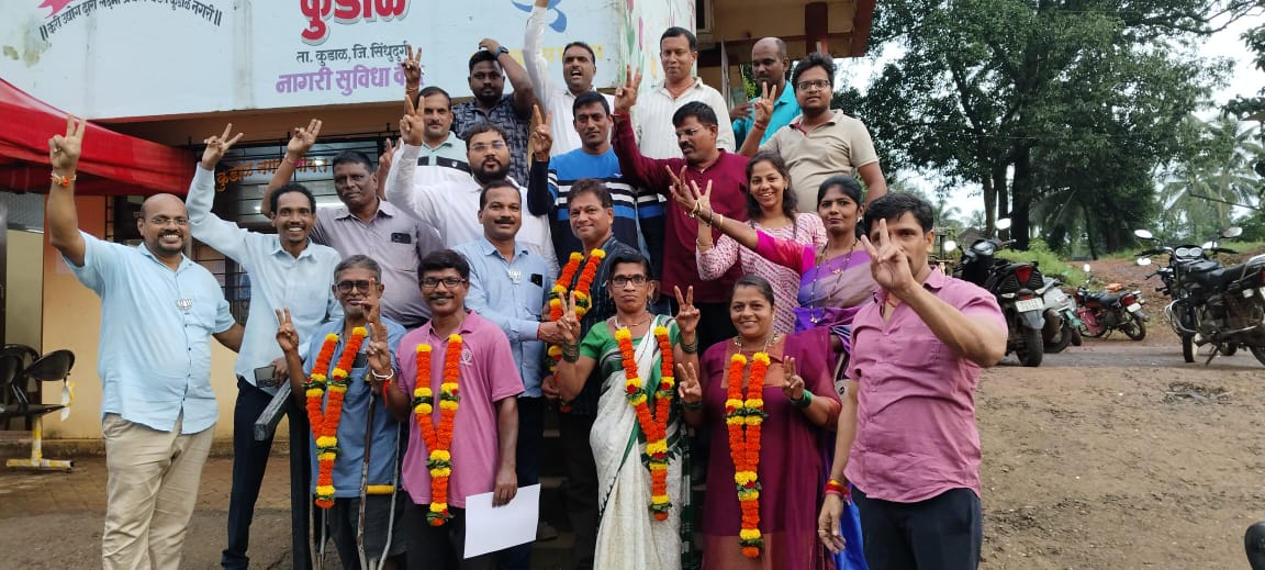कुडाळ नगरपंचायतीच्या नगर पथविक्रेता सदस्य समिती निवडणुकीमध्ये भारतीय जनता पक्षाने बाजी मारली यामध्ये झालेल्या ७ जागांच्या निवडणुकीपैकी ६ जागांवर भाजपने बाजी मारली या ६ जागांपैकी ४ जागा बिनविरोध भाजपने जिंकल्या होत्या आणि २ जागांसाठी झालेल्या निवडणुकीमध्ये सुद्धा दोन्ही जागांवर विजय मिळवला या विजय झालेल्या उमेदवारांचे मंडळ अध्यक्ष संजय वेंगुर्लेकर, जिल्हा सरचिटणीस विनायक राणे यांनी पुष्पहार घालून अभिनंदन केले. तसेच फटाक्यांची आताच बाजी करून विजय साजरा केला. यावेळी भाजपचे गटनेता विलास कुडाळकर, नगरसेवक निलेश परब, राजीव कुडाळकर, नगरसेविका चांदणी कांबळी, नगरसेवक गणेश भोगटे, महिला मोर्चा शहर अध्यक्ष मुक्ती परब, श्रीपाद तवटे , सुनील बांदेकर, बाळा पावसकर, प्रसन्ना गंगावणे, राकेश नेमळेकर, नागेश नेमळेकर, विश्वास पांगुळ आदी उपस्थित होते. यावेळी भाजपा गटनेता विलास कुडाळकर यांनी सांगितले की, ही निवडणुकी माजी केंद्रीय मंत्री व विद्यमान खासदार नारायण राणे, पालकमंत्री रवींद्र चव्हाण, भाजपचे कुडाळ मालवण विधानसभा प्रभारी निलेश राणे यांच्या नेतृत्व व मार्गदर्शनाखाली लढविण्यात आली यासाठी जिल्हाध्यक्ष प्रभाकर सावंत, मंडल अध्यक्ष संजय वेंगुर्लेकर, माजी नगराध्यक्ष विनायक राणे यांचे मार्गदर्शन लाभले या निवडणुकीमध्ये भाजपचे सर्व नगरसेवक तसेच पदाधिकारी, कार्यकर्ते यांनी सहकार्य केले या सर्वांचे आभारही मानत असल्याचे म्हटले आहे.