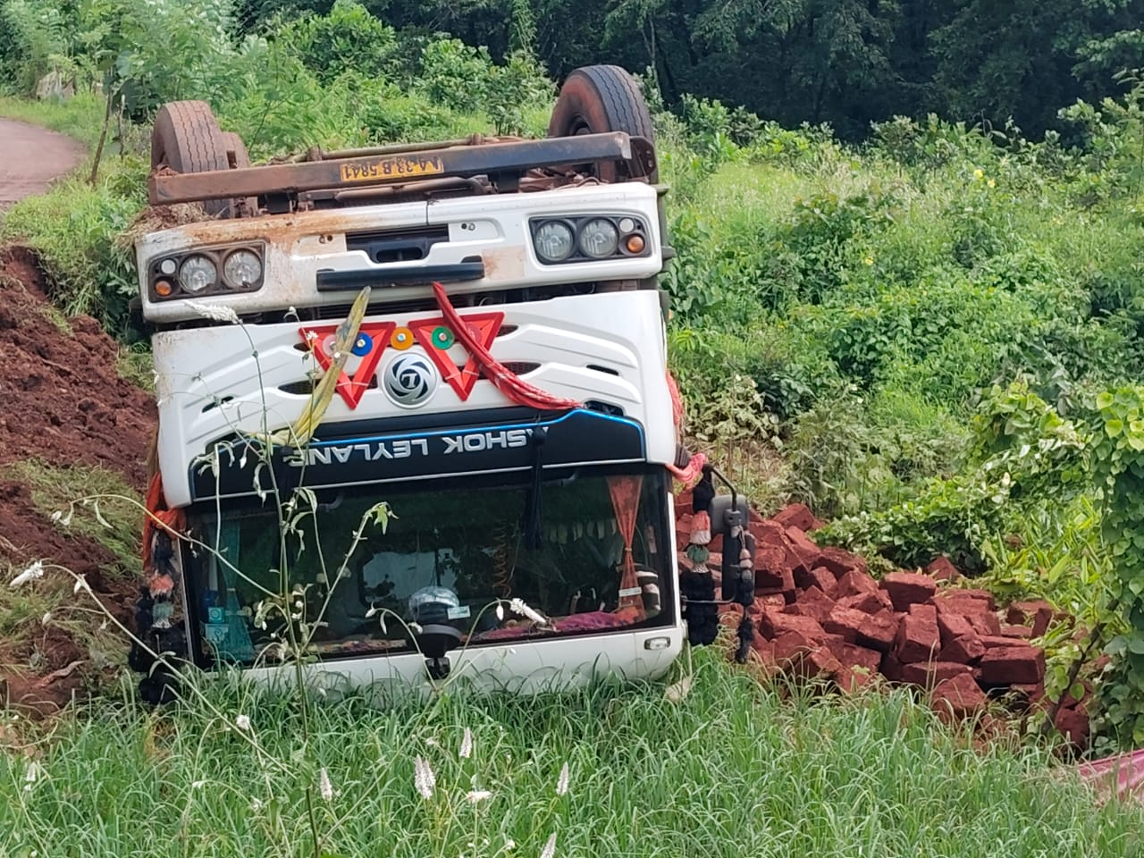 मालवण तालुक्यातील पळसंब – बुधवळे रस्त्यावर गोवा-२ प्रकल्पाच्या समोरील रस्त्यावर चिरे वाहतूक करणारा सोळा चाकी ट्रक रस्त्याच्या साईडपट्टी वरून लगतच्या शेतात पलटी झाल्याची घटना काल रात्री घडली. सुदैवाने वाहन चालक बचावला असला तरी ट्रक शेतीत पलटी झाल्याने नाचणी, कणगी शेतीचे नुकसान झाले. याबाबतची माहिती ग्रामस्थांना समजताच पळसंब सरपंच, उपसरपंच, माजी सरपंचासह ग्रामस्थांनी घटनास्थळी धाव घेत सुरु असलेल्या अवजड वाहतूकी विरोधात आक्रमक पवित्रा घेतला. घटनास्थळी दाखल झालेल्या आचरा पोलीसांकडे गाडीच्या चालकाविरोधात गुन्हा दाखल करण्याची मागणी ग्रामस्थांनी केली. जोपर्यंत झालेले शेतीचे नुकसान भरुन दिले जात नाही तोपर्यंत गाडी हलवायची नाही, असा पवित्रा घेतला होता.