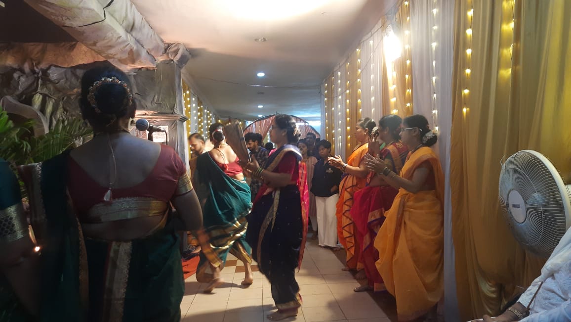⚡सावंतवाडी ता.१८-: शहरातील नगरपरिषदेच्या सार्वजनिक गणेशोत्सव मंडळाच्या गणेश मूर्ती समोर 21 महिलांनी अथर्वशीर्ष पठण केले त्याचबरोबर फुगड्या आणि भजनाच्याही कार्यक्रमाचे आयोजन करण्यात आले होते यामध्ये शिंदे शिवसेनेच्या महिला पदाधिकारी शिवानी पाटकर यांच्यासह महिलांचा मोठा प्रतिसाद मिळाला.