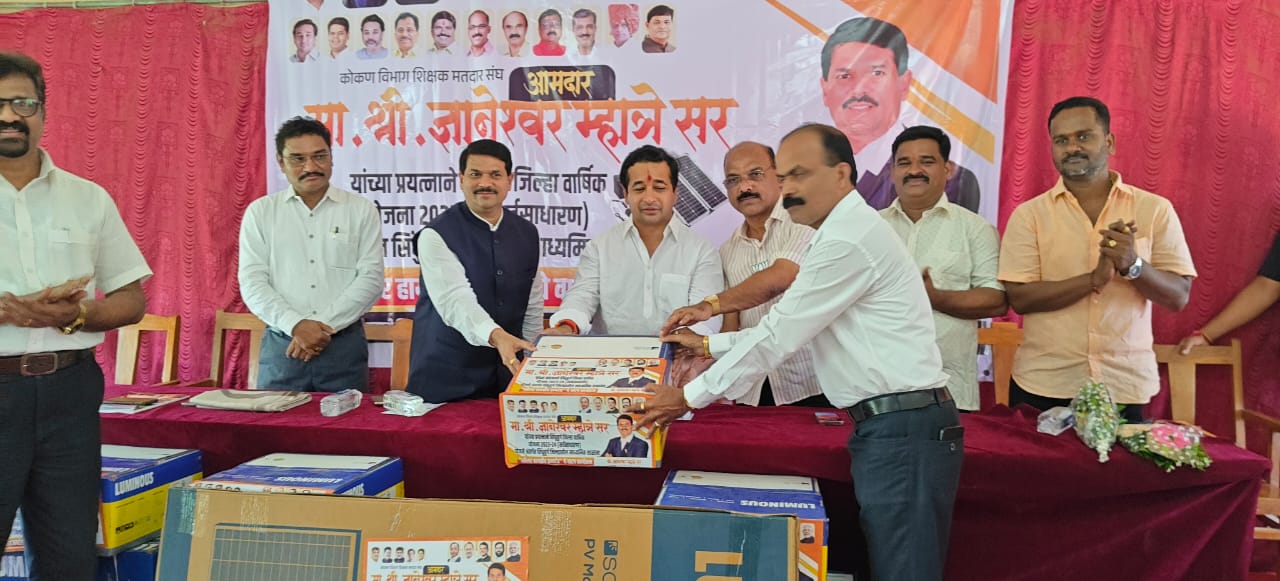 जिल्हा वार्षिक योजना अंतर्गत प्राप्त निधीतून १६० शाळांना सोलर हायब्रिड इन्व्हर्टर मंजूर झाले आहेत. त्यामधील कणकवली, देवगड वैभववाडी, मालवण, कुडाळ तालुक्यातील १०९ शाळांना कणकवली महाविद्यालयाच्या सभागृहात आ. नितेश राणे व आ. ज्ञानेश्वर म्हात्रे यांच्या हस्ते या सोलर हायब्रिड इन्व्हर्टरचे वितरण करण्यात आले.