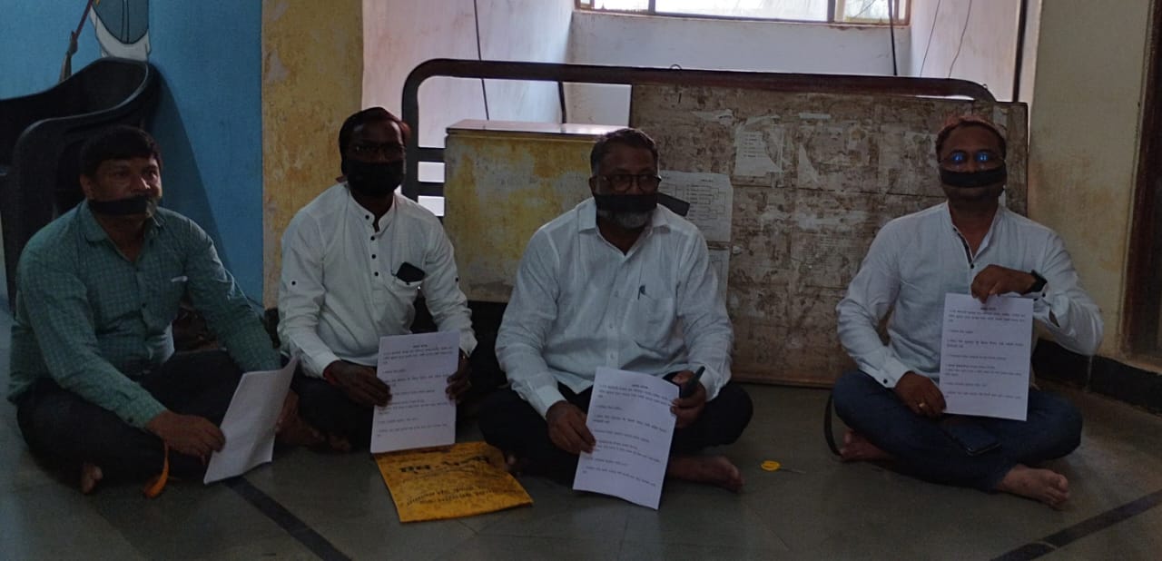 माध्यमिक शिक्षकांच्या विविध प्रश्नांकडे माध्यमिक शिक्षणाधिकारी कार्यालयाकडून दुर्लक्ष होत असल्याचा आरोप शिक्षक भारती संघटनेने करत आज आपल्या मागण्यासाठी जिल्हा परिषद शिक्षण विभागाबाहेर तोंडावर काळी पट्टी बांधून मुक आंदोलन छेडले.