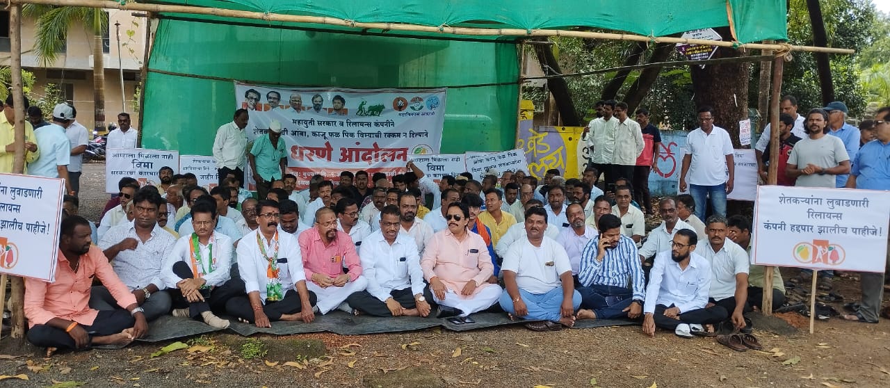 काजू विमामध्ये शेतकऱ्यांचा हिस्सा २ कोटी ६२ लाख असून राज्याने ३ कोटी ६७ लाख तर केंद्राने ३ कोटी ६७ लाख रुपये असा एकूण ९ कोटी ९६ लाख हे सुद्धा केंद्र व राज्य सरकारने विमा कंपनीला अद्यापपर्यंत दिलेले नाहीत. हे कारण देत विमा कंपनी शेतकऱ्यांना वेठीस धरत असून यामध्ये शेतकऱ्यांचे नुकसान होत आहे. त्यामुळे विमा रक्कम तातडीने मिळावी. यासाठी महाविकास आघाडीच्यावतीने आज जिल्हाधिकारी कार्यालयासमोर आमदार वैभव नाईक यांच्या नेतृत्वाखाली शेतकऱ्यांना घेऊन धरणे आंदोलन करण्यात आले. यावेळी आ. वैभव नाईक, जिल्हा प्रमुख संदेश पारकर, शिवसेना कणकवली विधानसभा प्रमुख सतीश सावंत, राष्ट्रीय काँग्रेस जिल्हाध्यक्ष इर्शाद शेख, राष्ट्रवादी काँग्रेस पार्टीचे (शरद पवार गट) जिल्हाध्यक्ष अमित सामंत यांच्यासह शेतकरी कार्यकर्ते आदी उपस्थित होते.
