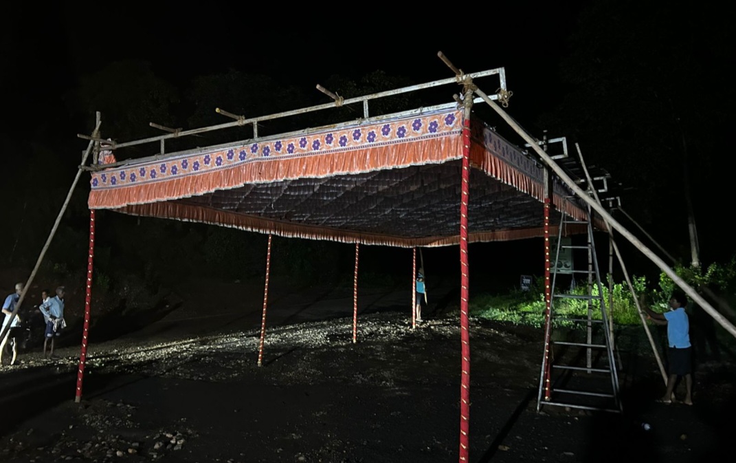 भूमिपूजनासाठीचा मंडप ग्रामस्थांनी रातोरात उखडून काढला: मागण्या मान्य झाल्याशिवाय रस्ता होऊ देणार नाही ; ग्रामस्थ ठाम..