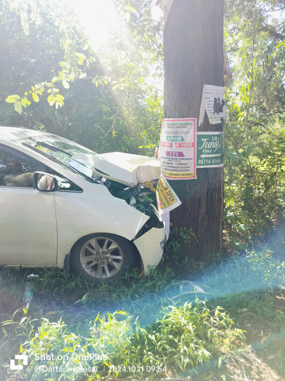 त्याला आंबेली येथे अचानक डुलकी लागली व कार रस्ता सोडून बाहेर जात झाडाला धडकली. घटना सकाळी साडेनऊच्या दरम्यान घडली.
