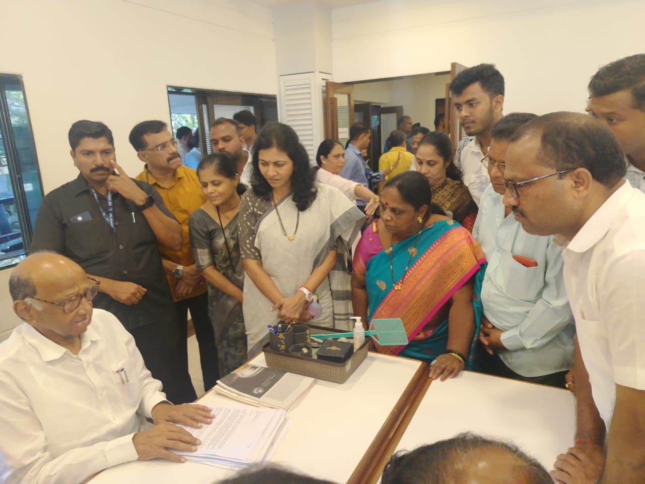 सावंतवाडी : राष्ट्रवादी काँग्रेस शरदचंद्र पवार पक्षाचे अध्यक्ष शरद पवार यांची कोकण विभाग महिला अध्यक्षा अर्चना घारे-परब, जिल्हाध्यक्ष अमित सामंत यांच्यासह जिल्ह्यातील प्रमुख पदाधिकाऱ्यांनी भेट घेतली. माजी आमदार राजन तेली यांच्या उबाठा शिवसेना प्रवेशाच्या पार्श्वभूमीवर ही भेट महत्त्वपूर्ण मानली जात आहे.