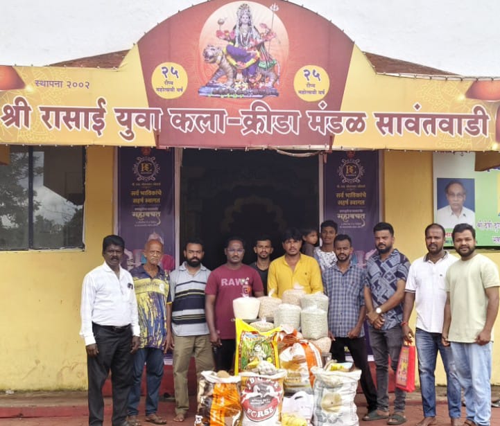 सावंतवाडी: सामाजिक बांधिलकी प्रतिष्ठानच्या माध्यमातून तालुक्यातील नवरात्र उत्सव मंडळांना आवाहन केलं होतो. निराधार व गोरगरीब व्यक्तींसाठी देवीकडे जमा झालेले अन्नधान सामाजिक बांधिलकी संस्थेकडे द्याव या आवाहनाला प्रतिसाद देत श्री रासाय युवा कला क्रीडा मंडळाचे अध्यक्ष कृष्णा लाखे यांनी सढळहस्ते सामाजिक बांधिलकी प्रतिष्ठानकडे 70 नारळ, 25 किलो तांदूळ ,20 किलो कडधान्य, 5 किलो रवा, तेल, डालडा अशा विविध वस्तू निराधार व गोरगरीब कुटुंबीयांना देण्यासाठी सामाजिक बांधिलकीकडे जमा केलेले आहेत. या वस्तूं सामाजिक बांधिलकीच्या माध्यमातून दहा कुटुंबांना पोहोचवल्या जाणार आहेत. श्री रासाई युवा कला क्रीडा मंडळाच्या या सेवाभावी कार्यकर्त्यांचे अध्यक्ष सतीश बागवे व कार्याध्यक्ष संजय पेडणेकर यांनी मनःपूर्वक आभार मानून त्यांचे कौतुक केले आहे.