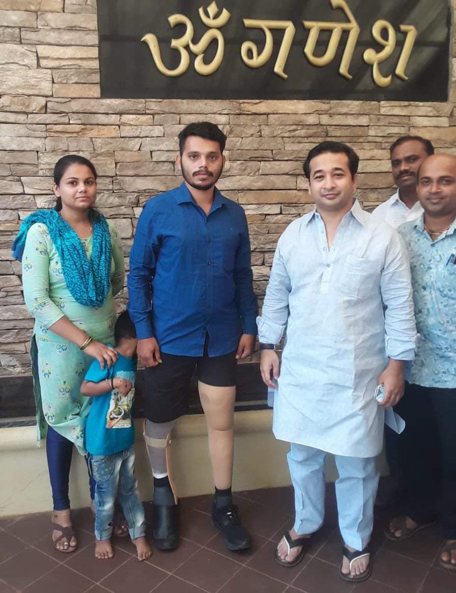 यासंदर्भात बोलताना सचिन म्हणाला, दोन वर्षांपूर्वी ओरोस येथे गावातील एका रुग्णावर उपचार चालू असल्याने त्याला पाहण्यासाठी जात असताना माझा मोठा अपघात झाला. त्या अपघातात पाय गमावल्याने माझी जगण्याची उमेद संपली होती. मात्र आमदार नितेश राणे यांनी मदत केल्याने मी आता कृत्रिम पायाने चालू शकणार आहे. दरम्यान सोमवारी मुंबईहून आल्यावर लागलीच आमदार नितेश राणे यांची त्यांच्या येथील ओम गणेश बंगल्यावर सचिन याने आपल्या परिवारासह भेट घेऊन नितेश राणे धन्यवाद दिले.