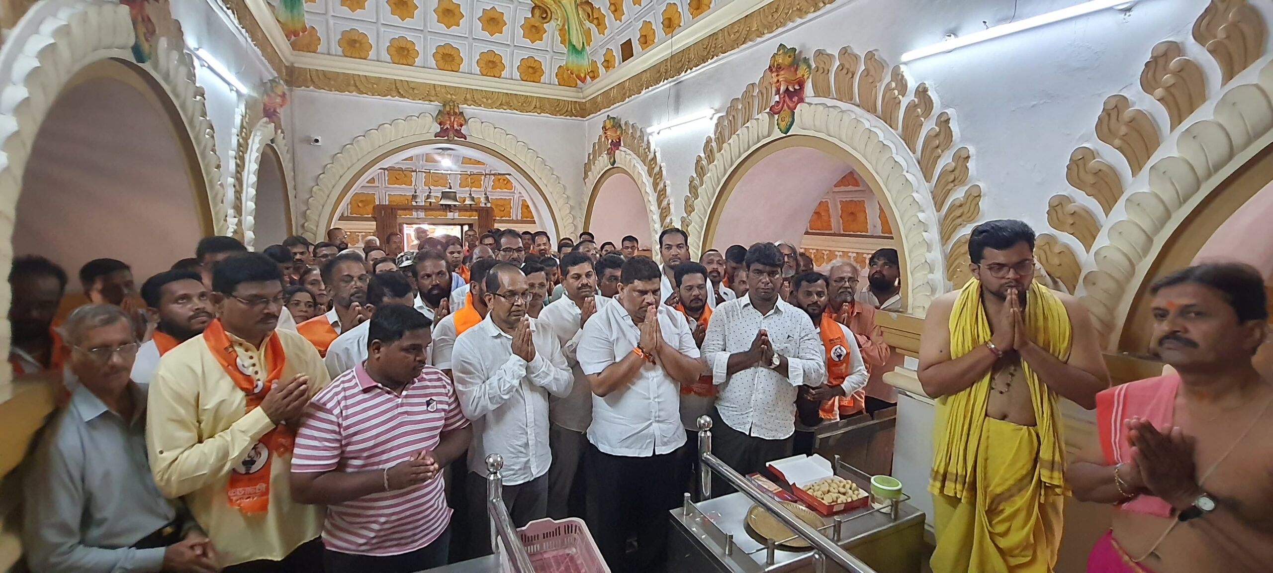 महाविकास आघाडीतर्फे ठाकरे शिवसेनेचे उमेदवार आम. वैभव नाईक हे दि. २४ ऑक्टोबर रोजी आपला उमेदवारी अर्ज दाखल करणार आहेत. या पार्श्वभूमीवर आज आम. नाईक यांनी मालवण देऊळवाडा येथे ग्रामदैवत श्री देव रामेश्वराला श्रीफळ अर्पण करून दर्शन घेतले. यावेळी कार्यकर्त्यांनी रामेश्वर चरणी साकडे घालून प्राचाराचा शुभारंभ केला. यावेळी श्री देव रामेश्वर देवस्थानचे मानकरी तसेच गावकर मंडळींच्या वतीने आम. नाईक यांचे पुष्पगुच्छ देऊन स्वागत करण्यात आले. श्री देव रामेश्वर बरोबरच श्री देव नारायण, श्री देवी सातेरी मंदिरात जाऊनही वैभव नाईक यांनी दर्शन घेतले.