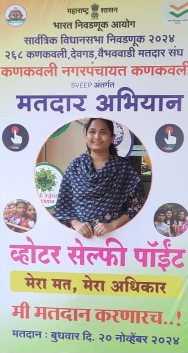 कणकवली : विधानसभा सार्वत्रिक निवडणूक अनुषंगाने कणकवली नगरपंचायत तर्फे मतदान जनजागृती व मतदानाची टक्केवारी वाढविण्यासाठी प्रबोधनपर विविध उपक्रम राबविले जात आहेत. यात मतदारांसाठी मतदार हस्ताक्षर अभियान व सेल्फी पॉईंट तयार करण्यात आला आहे. तर स्विप कार्यक्रमांतर्गत कणकवली नगरपंचायत मार्फत मतदान जनजागृतीसाठी विविध कार्यक्रम राबवले जातात आहेत. यामध्ये मतदान शपथ, पथ नाट्य, मतदान जनजागृती रॅली, हे उपक्रम, तसेच मतदार सेल्फी पॉईंट व मतदार हस्ताक्षर अभियान शहरामध्ये विविध ठिकाणी राबविण्यात आले आहेत.