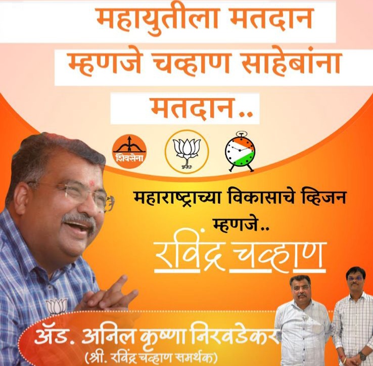 ⚡सावंतवाडी ता.०८-: महायुतीला मतदान म्हणजे चव्हाण साहेबाना मतदान, महाराष्ट्राचे व्हिजन म्हणजे रवींद्र चव्हाण असा स्टेटस आज सावंतवाडीतील वकील अँड अनिल निरवडेकर यांनी लावला असून, महायुतीला आपले समर्थन दर्शवले आहे. यात त्यांनी रवींद्र चव्हाण समर्थक असा देखील उल्लेख केला असल्याचे दिसून येत आहे.