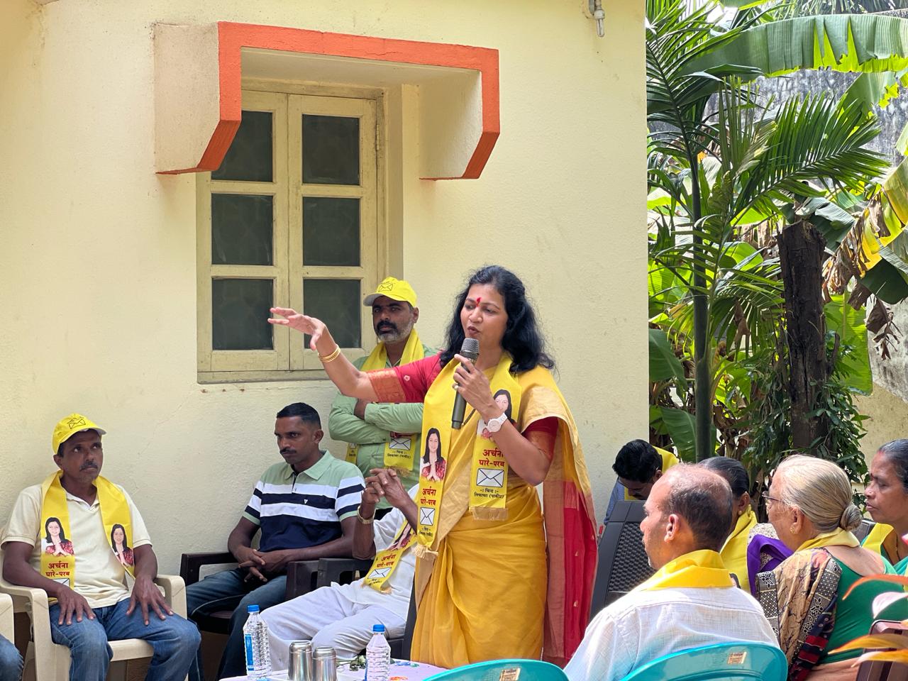 अपक्ष उमेदवार सौ. अर्चना घारे-परब यांनी सावंतवाडी मतदारसंघात प्रचारात आघाडी घेतली आहे. घरोघरी जाऊन त्या आपला अजेंडा मांडत आहेत. सावंतवाडी, दोडामार्ग व वेंगुर्ला तालुक्यातील भजन मंडळी, लोककलावंत दशावतार यांच्याशी यादरम्यान त्यांनी चर्चा केली, त्यांच्या समस्या जाणून घेतल्या. यावेळी सिंधुदुर्ग जिल्ह्याची बरखास्त झालेली कमिटी आमचे सरकार आल्यानंतर पहिल्या तिन महिन्यात पुन्हा कार्यान्वित करणार आहे. त्यांचे मानधन, त्यासाठीची नोंदणी प्रक्रिया सुरू होणार असल्याचे आश्वासन सौ.अर्चना घारे-परब यांनी दिले आहे. मतदारसंघातील भजन मंडळी, दशावतार कलावंतांशी चर्चेदरम्यान त्यांनी हे आश्वासन दिले आहे. तुमचे प्रश्न निकाली काढण्यासाठी मी कटीबध्द आहे असा विश्वास सौ. घारे यांनी दिला.
