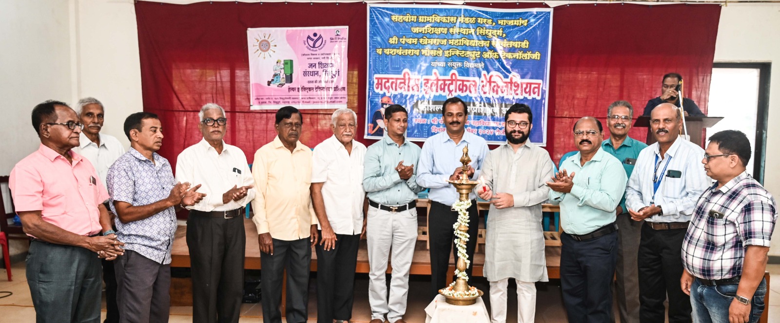 दीपप्रज्वलनाने करण्यात आले.याप्रसंगी व्यासपीठावर यशवंतराव भोंसले इन्स्टिट्यूट ऑफ टेक्नॉलॉजीचे श्री अच्युत सावंतभोंसले, श्री पंचम खेमराज महाविद्यालयाचे प्रभारी प्राचार्य प्रा. एम ए ठाकूर, जनशिक्षण संस्थान सिंधुदुर्ग चे संचालक श्री सुधीर पालव, सहयोग ग्रामविकास मंडळाचे अध्यक्ष प्रा. दिलीप गोडकर, प्रा. एम व्ही कुलकर्णी, श्री अण्णा देसाई, बाळू धुरी प्रा. बाळासाहेब नंदीहळ्ळी, प्रा. सुभाष गोवेकर, श्री राजेंद्र बिर्जे, श्री दत्तप्रसाद गोठोस्कर, ज्येष्ठ नागरिक संघाचे अध्यक्ष श्री पावसकर, जनशिक्षण संस्थांनचे श्री गजानन गावडे, श्री गणेश परब, महाविद्यालयाचा प्राध्यापक वर्ग व विद्यार्थी मोठ्या संख्येने उपस्थित होते.