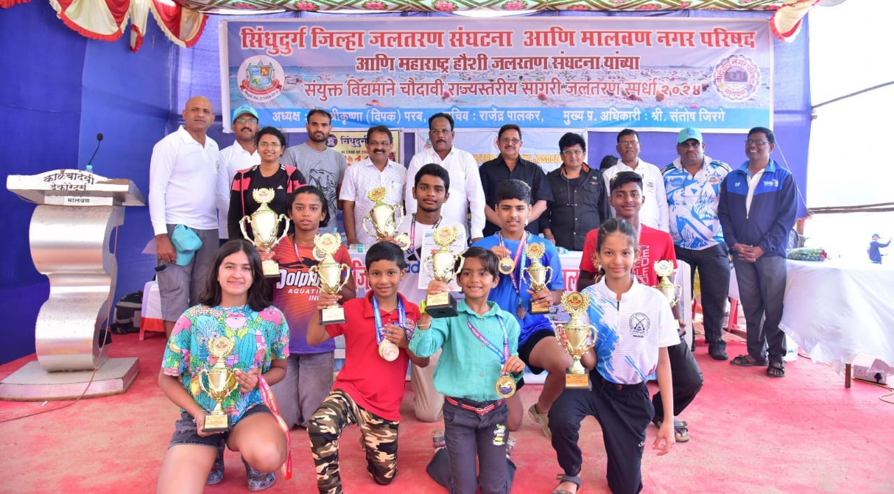 ⚡मालवण ता.२१-: महाराष्ट्र राज्य हौशी जलतरण संघटना यांच्या मान्यतेने सिंधुदुर्ग जिल्हा जलतरण संघटना व मालवण नगरपरिषद यांच्या संयुक्त विद्यमाने मालवण चिवला बीच येथे आयोजित १४ व्या राज्यस्तरीय सागरी जलतरण स्पर्धेच्या पहिल्या दिवशी राज्यभरातील स्पर्धक मोठ्या संख्येने उत्स्फूर्तपणे सहभागी झाले. स्पर्धेतील सर्वात मोठ्या १० किलोमीटर स्पर्धेत पुरुष गटात ठाणे येथील अश्विन कुमार, तर महिलांच्या गटात बेळगाव येथील डिंपल गोवडा यांनी वेगवान जलतरणपटूचा बहुमान पटकवला.