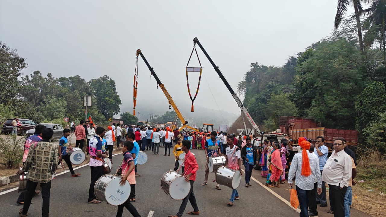 क्रेन आणि जेसीबी च्या साह्याने केली जाणार फुलांची उधळण:हजारोच्या संख्येने कार्यकर्ते पदाधिकारी आणि जनता खारेपाट्या नेते झाली उपस्थित..