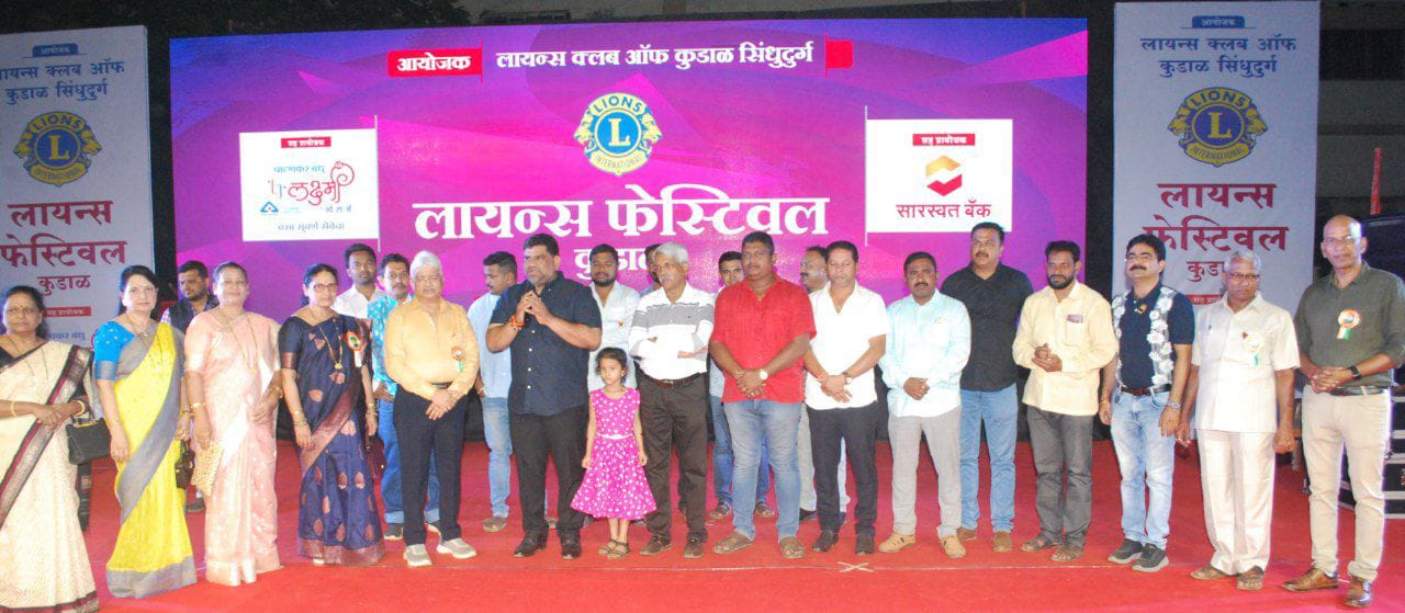 सरत्या वर्षाला निरोप आणि नवीन वर्षाच्या स्वागत पार्श्वभूमीवर लायन्स क्लब ऑफ कुडाळ, सिंधुदुर्ग या सेवाभावी संस्थेतर्फे घेण्यात येणाऱ्या 23 व्या लायन्स फूड फेस्टिवलला कुडाळ हायस्कूलच्या मैदानावर दिमाखात सुरूवात झाली दुसऱ्या दिवशी माजी आमदार नाईक यानी भेट दिली त्यांचे लायन्स ज्येष्ठ पदाधिकारी अँड अजित भणगे यानी स्वागत केले यावेळी लायन सीए, सुनील सौदागर लक्ष्मी ज्वेलर्सचे राहुल पाटणकर, राजू पाटणकर पोलिस निरीक्षक राजेंद्र मगदूम संदीप भोसले गणेश कऱ्हाडकर,अँड श्रीनिवास नाईक लायन सेवा संकुल अध्यक्ष ऍड अमोल सामंत लायन्स क्लब कुडाळ प्रेसिडेंट चंद्रशेखर पुनाळेकर लायन फेस्टिवल चेअरमन गणेश म्हाडदळकर आनंद बांदिवडेकर सीए सागर तेली, संजीव प्रभू नगरसेवक उदय मांजरेकर राजन नाईक सचिन काळप राजू गवंडे सुशील चिंदरकर मंदार शिरसाट शोभा माने डॉ दिपाली काजरेकर, प्रकाश नेरुरकर डॉ विवेक पाटणकर,देविका बांदेकर, बाळू अंधारी पल्लवी तारी जी दत्ताराम अनंत शिंदे नयन भणगे स्नेहा नाईक ऍड समीर कुळकर्णी डॉ सुशांता कुळकर्णी डॉ जयंती कुळकर्णी चेतना चुबे रश्मी चव्हाण अस्मिता बांदेकर मेघा सुकी अँड शेखर वैद्य, डॉ अमोघ चुबे,अँड मिहीर भणगे, जीवन बांदेकर शैलेश मुंडये, साईश सामंत कपिल शिरसाट राजन कोरगावकर मंजुनाथ फडके मनोज मठकर लायन्स, रोटरी क्लबचे पदाधिकारी जिल्ह्यातील विविध क्षेत्रातील मान्यवर रसिकवर्ग उपस्थित होता