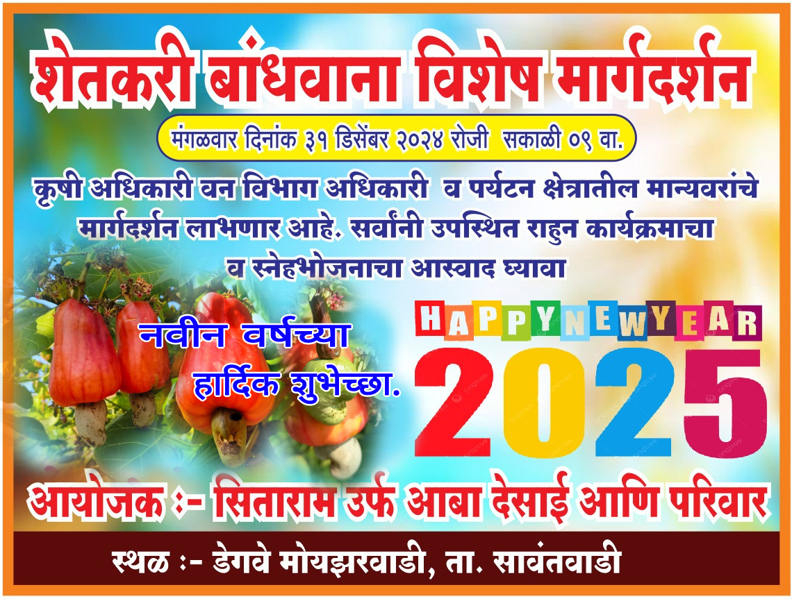 ⚡बांदा ता.३०-: डेगवे मोयझरवाडी येथे मंगळवार दिनांक ३१ रोजी सकाळी ९ वाजता शेतकरी बांधवाना विशेष मार्गदर्शन शिबिराचे आयोजन करण्यात आले आहे.