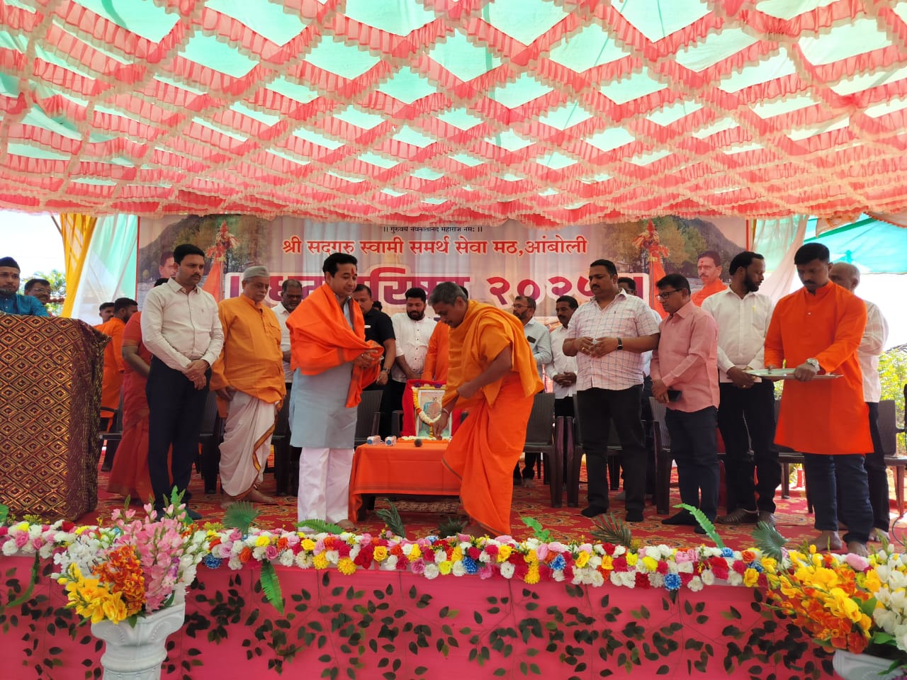 आंबोली कामतवाडी येथील स्वामी समर्थ मठ येथे तीन दिवसीय धर्म परिषदेचे आयोजन करण्यात आले आज त्याचा दुसरा दिवस.या कार्यक्रमासाठी हिंदुत्व वादी नेते व मत्स्य उद्योग आणि बंदर विकास मंत्री नितेश राणे उपस्थित होते. त्यांचे स्वागत आंबोली पोलीस स्थानकाजवळ भाजप पदाधिकाऱ्यांनी केले.सरपंच सावित्री पालेकर,सोसायटी अध्यक्ष शशिकांत गावडे,चौकुळ सरपंच गुलाबराव गावडे,बाबू शेटवे,गेळे सरपंच सागर ढोकरे ,माजी सभापती आत्माराम पालेकर, गुरूदास पेडणेकर, प्रकाश गावडे, संतोष पालेकर, दिलीप सावंत,नमिता राऊत,दिव्या सावंत,दीपक मेस्त्री,रूपा गावडे,अमरेश गावडे आदी नी स्वागत केले.याठिकाणी शशिकांत गावडे यांच्या हस्ते शाल व श्रीफळ देऊन सत्कार करण्यात आला. यानंतर श्री राम मंदिर येथे शिंदे गटातर्फे ही पुष्पगुछ देऊन स्वागत करण्यात आले. यांनतर स्वामी समर्थ मठ येथे कार्यक्रम करण्यात आला. हिंदू धर्म परिषद व्यासपीठावर मंत्री श्री नितेश राणे,जिल्हा बँक अध्यक्ष मनीष दळवी,संचालक महेश सारंग,रवी मडगांवकर,श्वेता कोरगावकर,दिनेश गावडे,सरपंच सावित्री पालेकर,आत्माराम पालेकर,गुलाबराव गावडे,सागर ढोकरे,उप सरपंच दत्तू नार्वेकर,संतोष पालेकर, बाळा उर्फ प्रकाश गावडे,गुरु पेडणेकर, मेघा गांगण, अनंत गावडे, उल्हास गावडे,विकास गावडे, वसंत गावडे,बबन गावडे,नारायण कोरगावकर, आदी उपस्थित होते.या वेळी श्री जोशी महाराजांच्या हस्ते मंत्री नितेश राणे यांचा सत्कार करण्यात आला. त्यानंतर मठाचे गुरु श्री परमानंद महाराज यांच्या हस्ते ही राणे यांचा सत्कार करण्यात आला. यावेळी नितेश राणे म्हणाले, स्वामी समर्थ तसेच अन्य मठामार्फत हिंदू चा प्रसार प्रचार होत आहे.जाणीव जागृतीचे काम निरंतर होत आहे हे कौतुकास्पद आहे.हिंदू म्हणून एकमेकास सहकार्य करण्यास पुढे आले पाहिजे.हिंदू धर्म रक्षक म्हणून प्रत्येकाने आपली जबाबदारी पार पडायला हवी.कडवट पणा दाखवला पाहिजे. इस्लाम धर्म ज्या पद्धतीने धर्म अभिमान बाळगतो त्या नुसार हिंदू ने जागृत होण्याची आवश्यक्यता आहे. २०४७ ला इस्लामिक राष्ट्र घोषित करण्याचे मनसुभे षडयंत्र धर्मांतरन् हे सर्व प्रकार हानून पाडले पाहिजेत. इतर धर्माप्रमाणे हिंदू ना न्याय असला पाहिजे.हिरवे झेंडे कोणतीही परवानगी न घेता लावले जातात मात्र भगव्यासाठी परवानगी हे चालणार नाही. भारत हे हिंदू राष्ट्र आहे.त्याचा अभिमान आणि दबदबा राहिला पाहिजे.आपण आयुष्य जगत असताना धर्माला प्राधान्य दिले पाहिजे.हिंदू साठी किती अंगावर घ्यायला तयार आहोत याच मोजमाप झाल पाहिजे.हिंदू साठी बाजू घेणे हे कर्तव्य मानल पाहिजे.सर्व धर्म समभाव यावर बंदी आणायला हवी. हिंदुत्व हृदयात असले पाहिजे. असे प्रतिपादन नितेश राणे यांनी आंबोलीत के