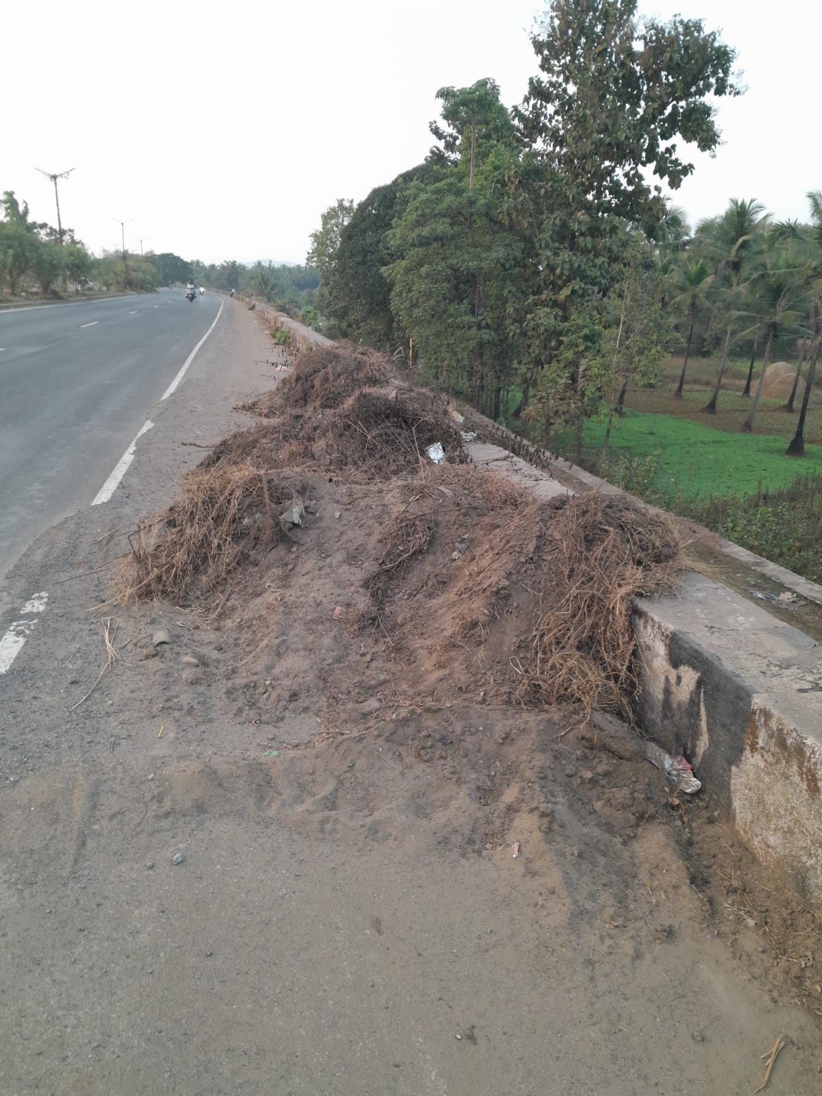 रस्त्याच्या कडेलाच कामगारांनी साफ केलेल्या कचऱ्याचा ढिगारा टाकण्यात आला आहे. गेले कित्येक दिवस तो कचऱ्याचा ढिगारा तेथेच आहे. वाहनांच्या वेगामुळे या कचऱ्याची धुळ लोकांच्या नाकातोंडात जाते. तसेच या ढिगाऱ्यामुळे अपघात होण्याचा धोका देखील निर्माण झाला आहे. त्यामुळे येत्या दोन दिवसात सदर कचऱ्याचा ढिगारा येथून हटवावा अशी मागणी बांदावासीयांकडून होत आहे.