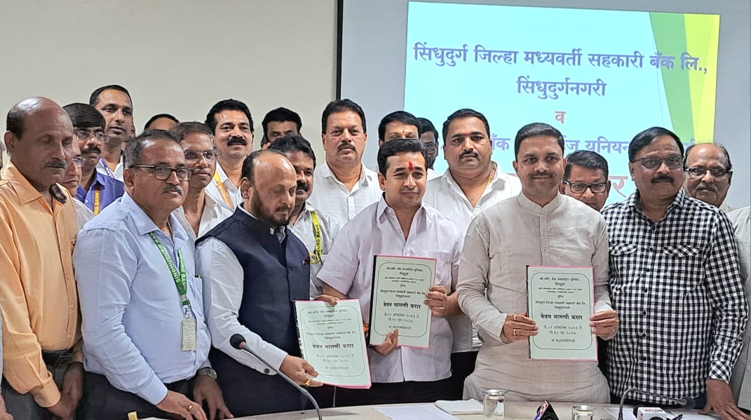 सिंधुदुर्ग जिल्हा मध्यवर्ती सहकारी बँकेच्या कर्मचाऱ्यांना सरासरी ६.३१ टक्के पगारवाढ देणारा करार शुक्रवारी कर्मचारी संघटना को ऑपरेटिव्ह बँक एम्प्लॉइज सिंधुदुर्ग आणि जिल्हा बँक यांच्यात झाला. राज्याचे मत्स्य व बंदरे विकासमंत्री नितेश राणे यांच्या उपस्थितीत जिल्हा बँक अध्यक्ष मनीष दळवी यांनी युनियनचे अध्यक्ष आनंदराव अडसूळ यांनी या करारावर स्वाक्षरी केली. १ ऑक्टोबर २०२३ पासून हा करार लागू असून ३० जून २०२७ पर्यंत ३ वर्ष ९ महिने हा करार लागू राहणार आहे. या करारात १ एप्रिल २०२५ पासून बँकेच्या अधिकारी, कर्मचाऱ्यांना युनिफॉर्म करण्यात आला आहे.