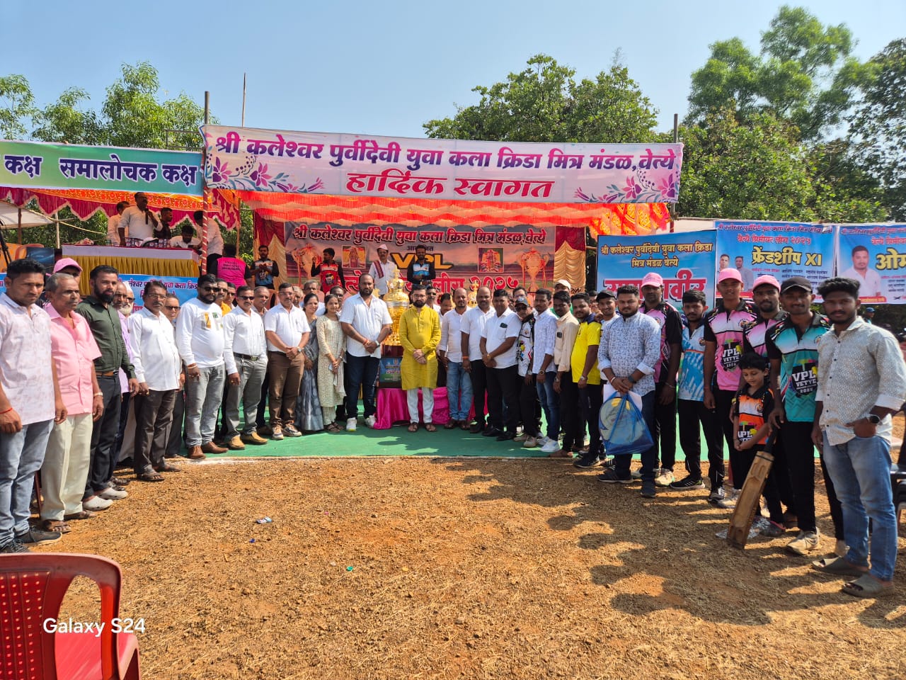 ⚡सावंतवाडी ता.०१-: श्री कलेश्वर पूर्वीदेवी युवा कला क्रीडा मंडळ आयोजित भव्य वेत्ये प्रिमीयर लीग 2025 च शानदार उद्घाटन सावंतवाडी संस्थांचे युवराज लखमराजे भोसले यांच्या हस्ते श्रीफळ वाढून करण्यात आले. यावेळी क्रिकेटपटू मोठ्या संख्येने उपस्थित होते. यावेळी उपस्थितांकडून सरपंच गुणाजी गावडे यांना देखील वाढदिवसाच्या शुभेच्छा देण्यात आल्या.