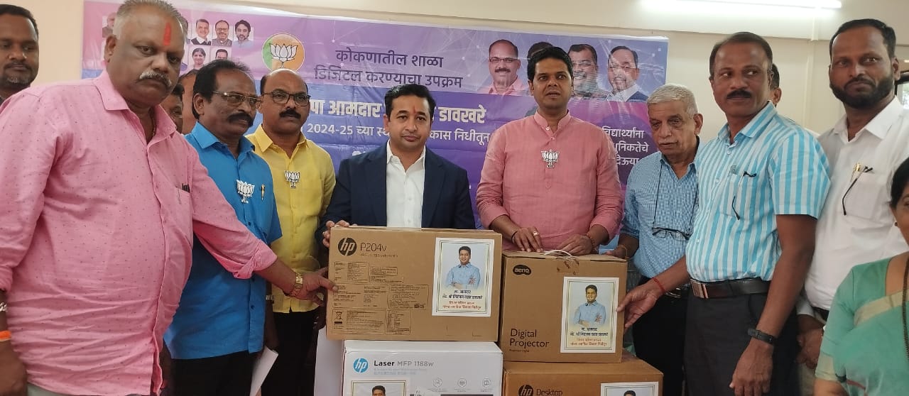 पालकमंत्री नितेश राणे: आ निरंजन डावखरे यांच्या निधीतून शाळा डिजिटलसाठी लागणाऱ्या साहित्याचे वाटप..