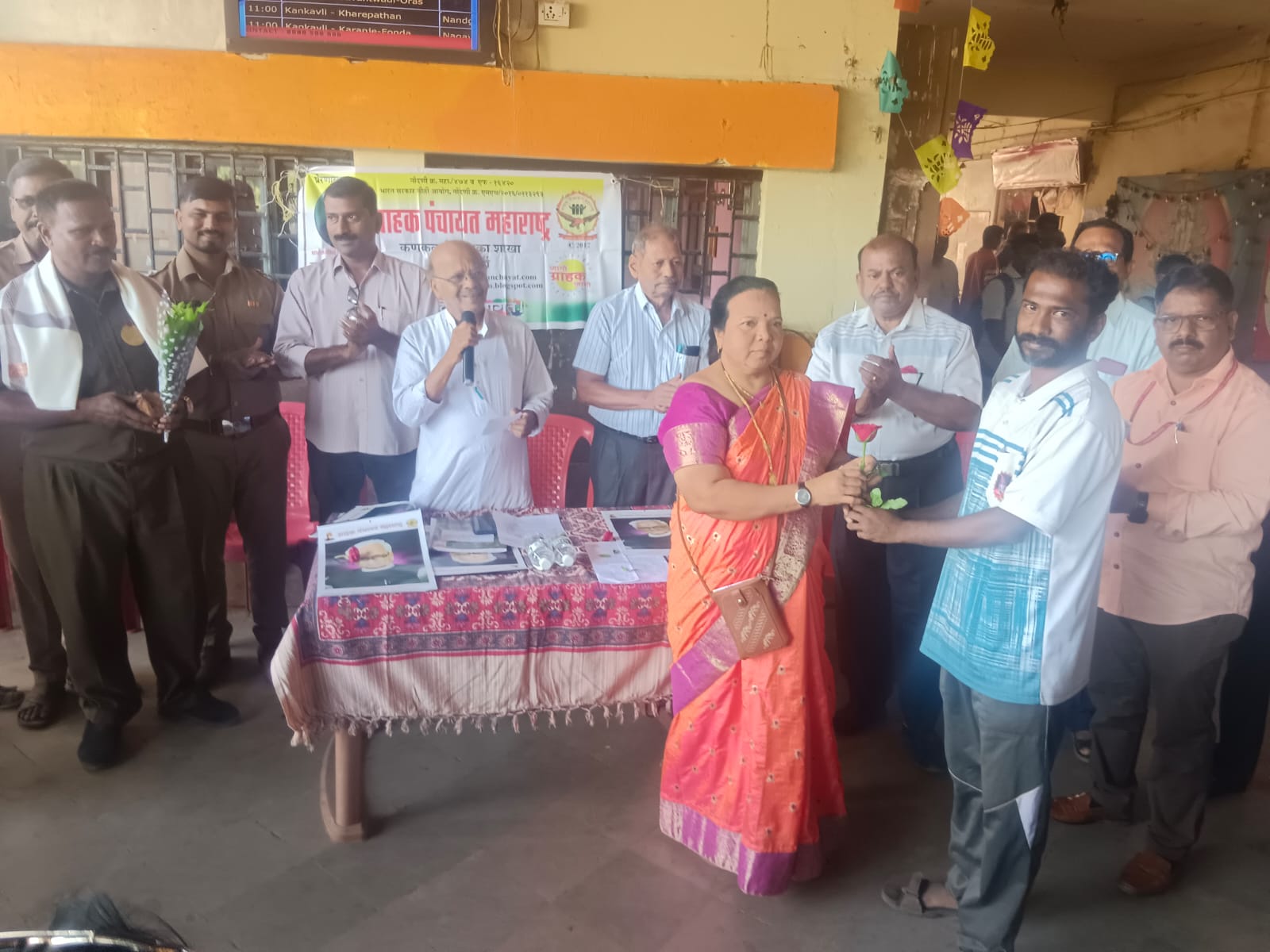 याप्रसंगी अध्यक्ष मनोहर पालयेकर, स्थानकप्रमुख प्रदीप परब, अशोक करंबेळकर, दादा कुडतरकर, वाहतूक नियंत्रक कृष्णा मुळदेकर, विनय राणे, संजय मालंडकर, विलास चव्हाण, राजाराम परब, मालचंद्र मराठे, सुगंधा देवरूखकर श्रद्धा कदम, प्रकाश वाळके, राजन भोसले, संदेश मयेकर, जनार्दन शेळके आदी मान्यवर उपस्थित होते.