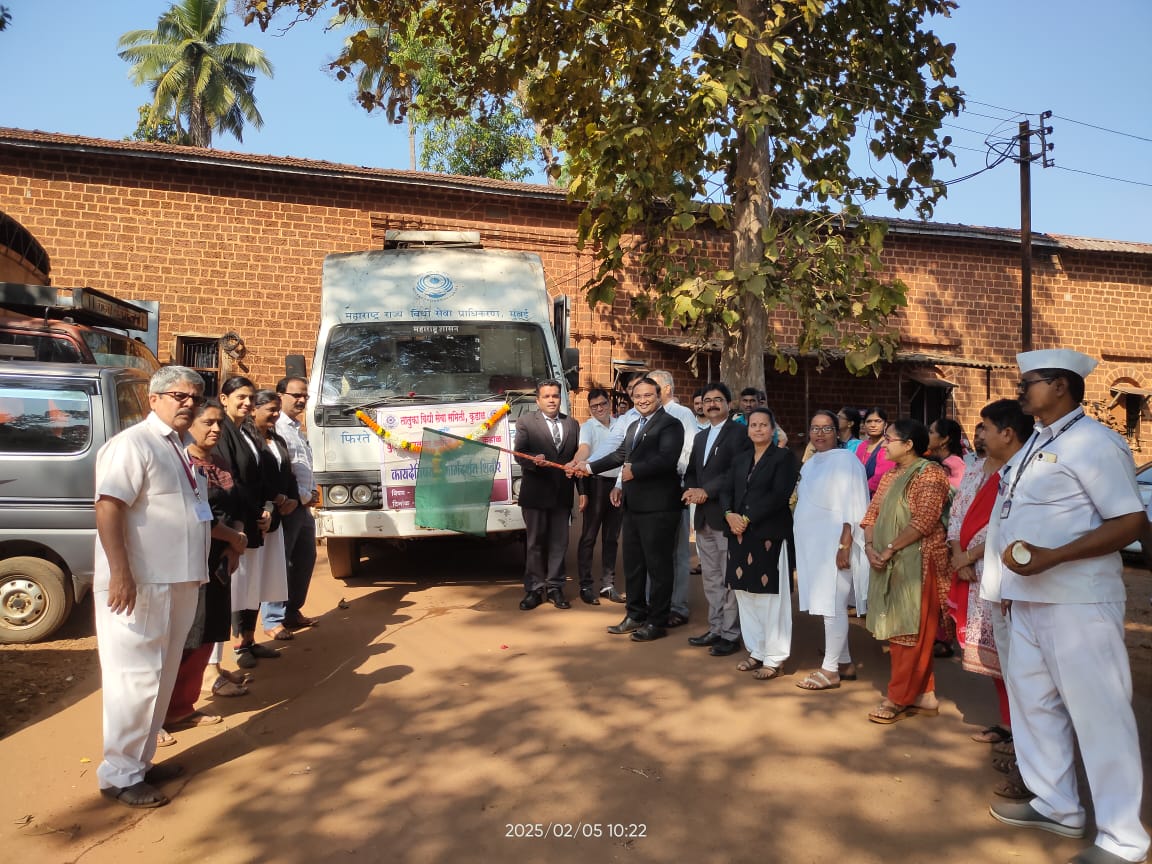जी.ए. कुलकर्णी दिवाणी न्यायाधीश क. स्तर कुडाळ यांनी मोबाईल व्हॅन पुजन करुन हिरवा झेंडा दाखवून मोबाईल व्हॅन झाराप येथे शिबीरासाठी मार्गस्थ केली.