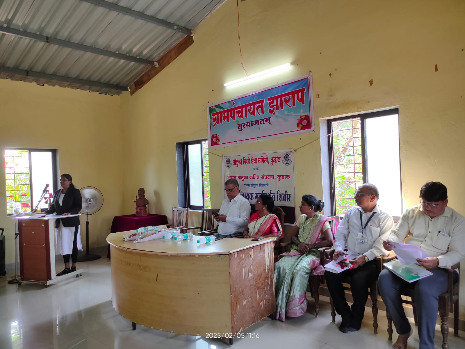 ⚡कुडाळ ता.०५-: ग्रामीण भागातील सर्वसामान्य व्यक्तीनां कायदयाची ओळख व माहिती मिळावी या उद्देशाने आणि ना. उच्च न्यायालय विधी सेवा प्राधिकरण मुंबई व जिल्हा विधी सेवा प्राधिकारण सिंधुदुर्ग ओरोस यांचे निर्देशानूसार दिवाणी न्यायालय, (क. स्तर) कुडाळ, व कुडाळ तालुका वकील संघटना यांचे वतीने आज सकाळी झाराप ग्रा.प. येथे मोबाईल वॅन शिबीराचे आयोजन करण्यात आले होते.
