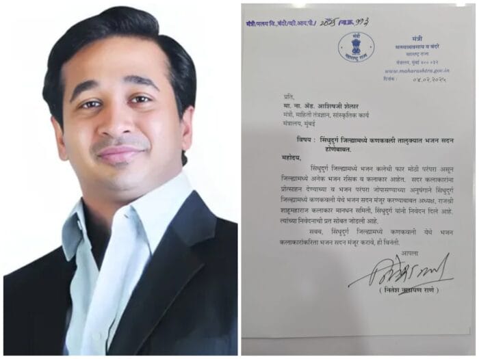 ⚡कणकवली ता.०५:- भजन कलेस शासन मान्यता मिळावी यासाठी राज्याचे मत्स्योद्योग व बंदरे विकास मंत्री तथा सिंधुदुर्ग जिल्ह्याचे पालकमंत्री ना. नितेश राणे यांनी मंत्री माहिती तंत्रज्ञान, सांस्कृतिक कार्य मंत्रालय, मुंबई ना. अॅड. आशिष शेलार याना पत्र दिले आहे.