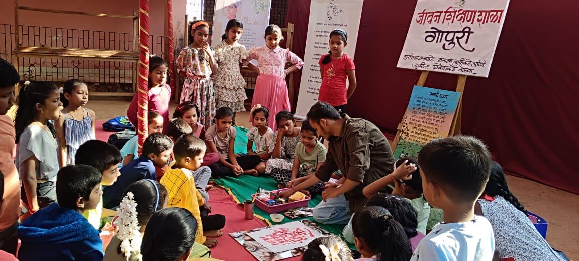 यावेळी गोपुरी आश्रम चे अध्यक्ष प्रा. डॉ. राजेंद्र मुंबरकर ,सचिव विनायक मेस्त्री, संचालिका अर्पिता मुंबरकर,जीवन मूल्यशिक्षण शाळेचे संयोजक विनायक सापळे तसेच पालक उपस्थित होते.
