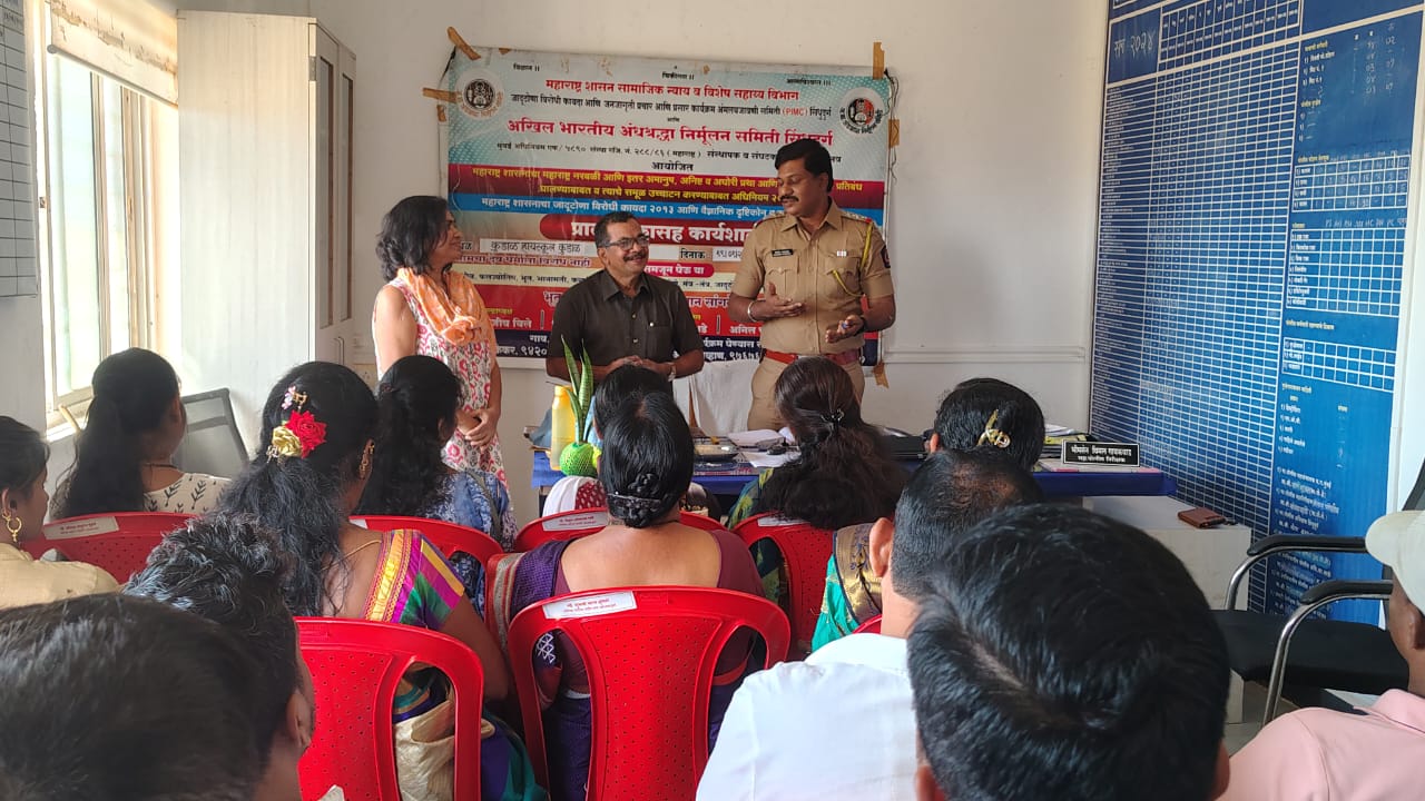 जादूटोणा विरोधी कायदा प्रचार आणि प्रसार कार्यक्रम अंमलबजावणी समिती सिंधुदुर्ग आणि अखिल भारतीय अंधश्रद्धा निर्मूलन समिती सिंधुदुर्ग यांच्या संयुक्त विद्यमाने आणि पोलीस ठाणे निवती यांच्या पुढाकाराने निवती पोलिस ठाणे कार्यक्षेत्रातील सर्व पोलिस पाटील यांना जादूटोणा विरोधी कायद्याचे मार्गदर्शन आणि वैज्ञानिक दृष्टिकोन याविषयीचे प्रात्यक्षिकासह व्याख्यान निवती पोलिस ठाणे येथे त्यांनी आयोजित केले होते . त्यावेळी ते बोलत होते . यावेळी त्यांच्यासोबत अखिल भारतीय अंधश्रद्धा निर्मूलन समितीचे जिल्हा संघटक विजय चौकेकर , ॲड . स्वाती भाटकर उपपोलिस निरिक्षक पाटील, श्री शेट्ये पोलिस अंमलदार नितिन शेडगे , पोलिस हवालदार कांदळगांवकर आदी उपस्थित होते .