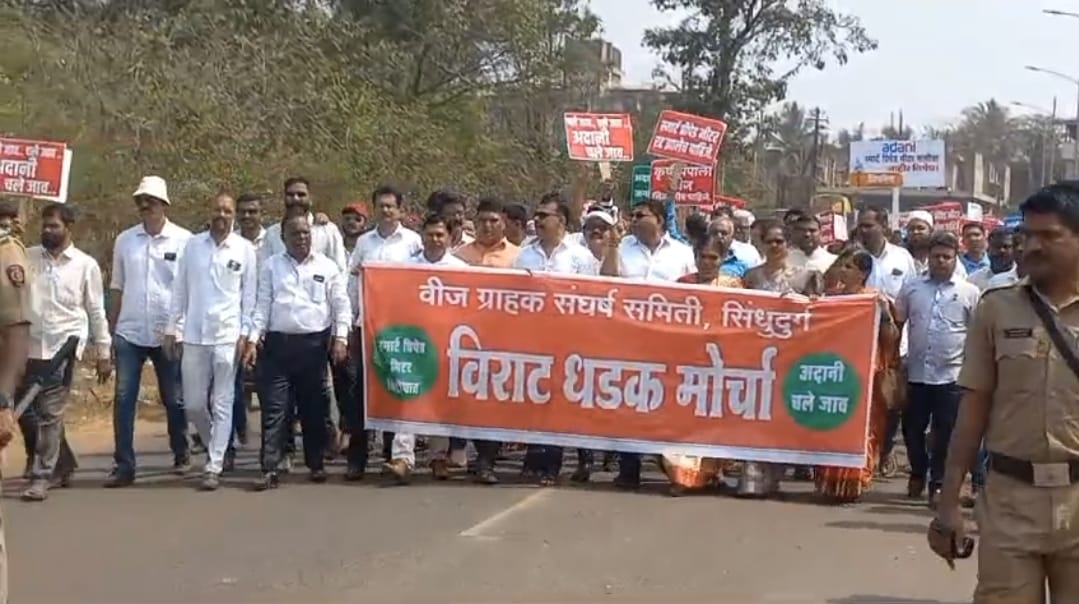 अदानी गो बॅक,फडणवीस सरकारचा निषेध असो, स्मार्ट मीटर रद्द झालेच पाहिजेत, कृषी पंपाला वीज मिळालीच पाहिजेत, महावितरणचे खाजगीकरण रद्द झालेच पाहिजेत असे हातात फलक घेत सरकारच्या विरोधात घोषणाबाजी करत स्मार्ट मीटर विरोधात सिंधुदुर्ग जिल्ह्यातील वीज ग्राहकांनी कुडाळ महिला रुग्णालय ते महावितरण कुडाळ अधिक्षक अभियंता कार्यालयावर जोरदार धडक देत आंदोलन छेडले. त्यापूर्वी महावितरणच्या स्मार्ट मीटर विरोधात कुडाळ येथील महिला हाॅस्पिट समोरच्या समोर मोर्चासाठी वीज ग्राहक संघटना अध्यक्ष संपत देसाई, माजी आमदार वैभव नाईक, काॅग्रेस जिल्हाध्यक्ष ईर्षाद शेख, राष्ट्रवादी (शरद पवार गट) पक्षाचे जिल्हाध्यक्ष अमित सामंत, जिल्हाप्रमुख संजय पडते, बाबुराव धुरी,सुनील शिंत्रे, संदेश पारकर आदिसह प्रमुख मंडळी व वीजग्राहक एकत्रित झाले.