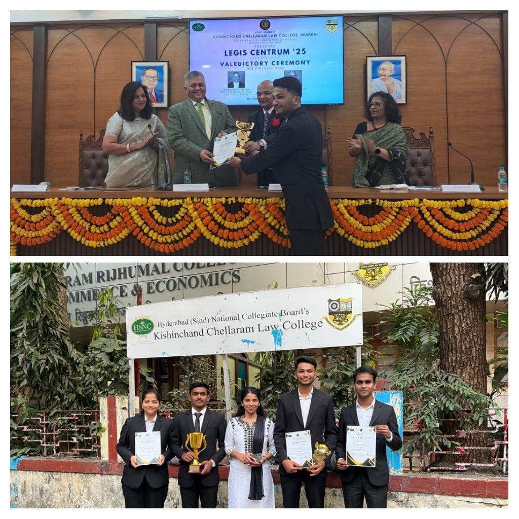 ⚡सावंतवाडी ता.१७-: किशीनचंद चेल्लाराम लॉ कॉलेज मुंबई कडून आयोजित केलेल्या ‘लेजीस सेंट्रम लॉ फेस्ट’ मधील कन्ट्री वाईड नॅशनल लेव्हल मेडिएशन स्पर्धेत व्हिक्टर डांटस लॉ कॉलेज कुडाळ च्या टीमने प्रथम क्रमांक मिळवला. सदर टीममध्ये लॉ कॉलेजचे सहिष्णू पंडित, एडवर्ड पिंटो, प्रतीक सावंत सहभागी झाले. या टीमला मुंबई उच्च न्यायालयाचे न्यायाधीश मा. श्री. मोडक आणि मा. श्री. जैन यांच्या हस्ते ट्रॉफी व प्रशस्तीपत्रके देऊन गौरविण्यात आले.